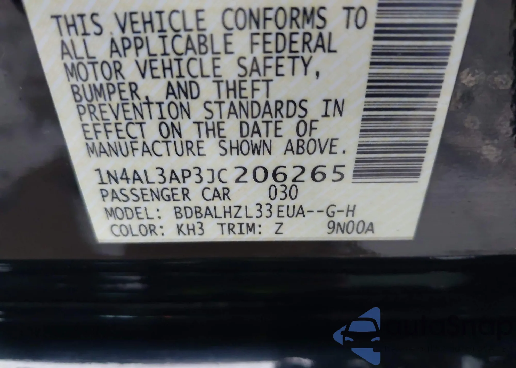 LOT: 43797817 VIN: 1N4AL3AP3JC206265