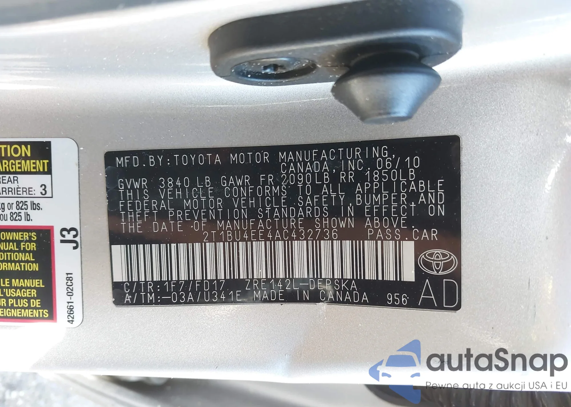 LOT: 43902065 VIN: 19XFA1F92AE000030