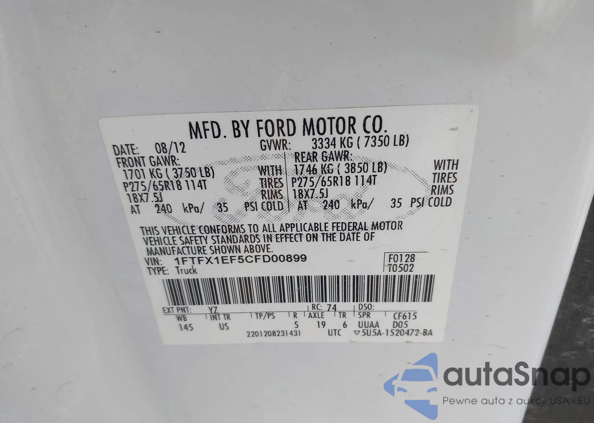 • VIN 1FTFX1EF5CFD00899