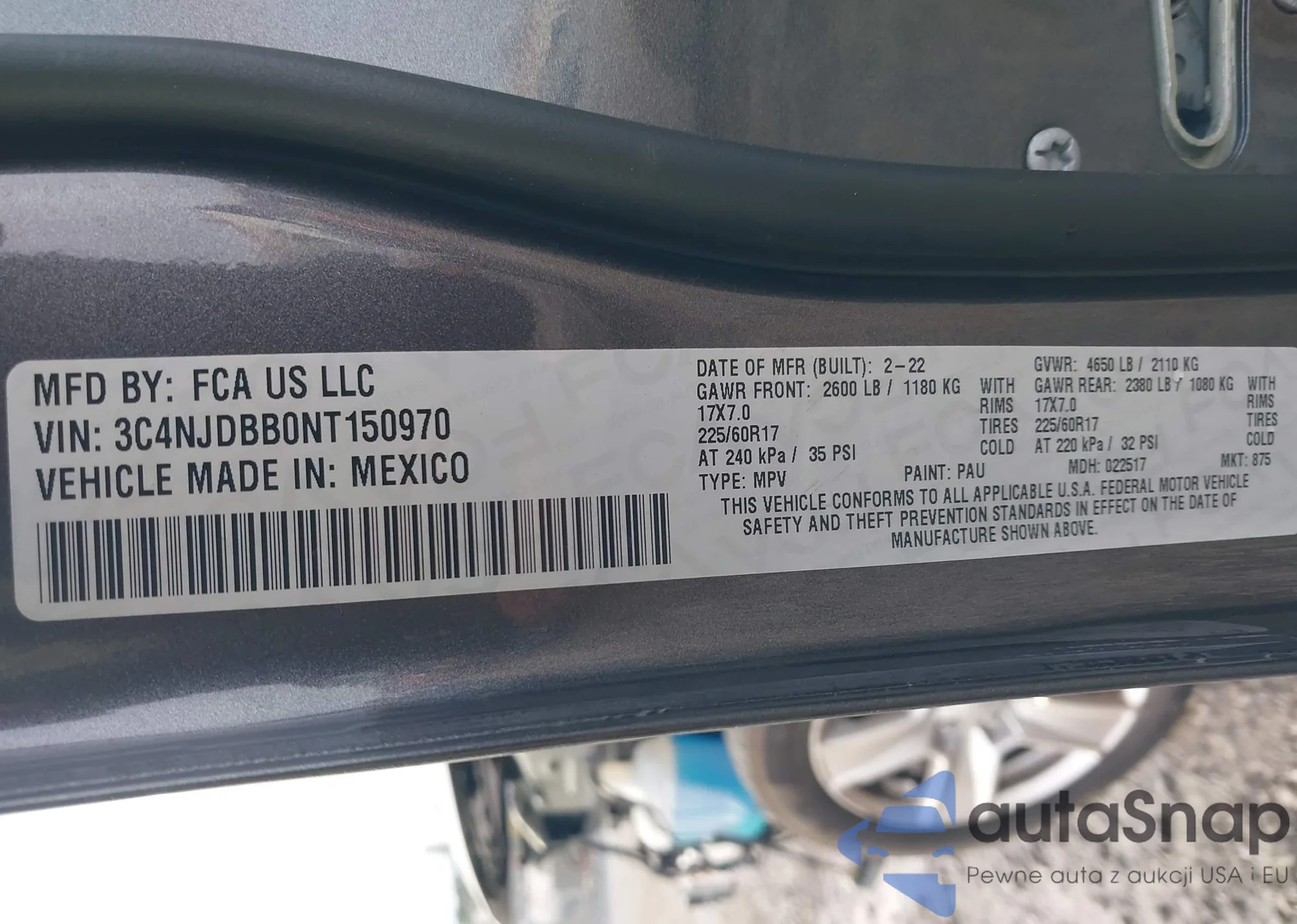 2022 Jeep Compass Latitude 4X4 from USA, damaged, VIN 3C4NJDBB0NT150970