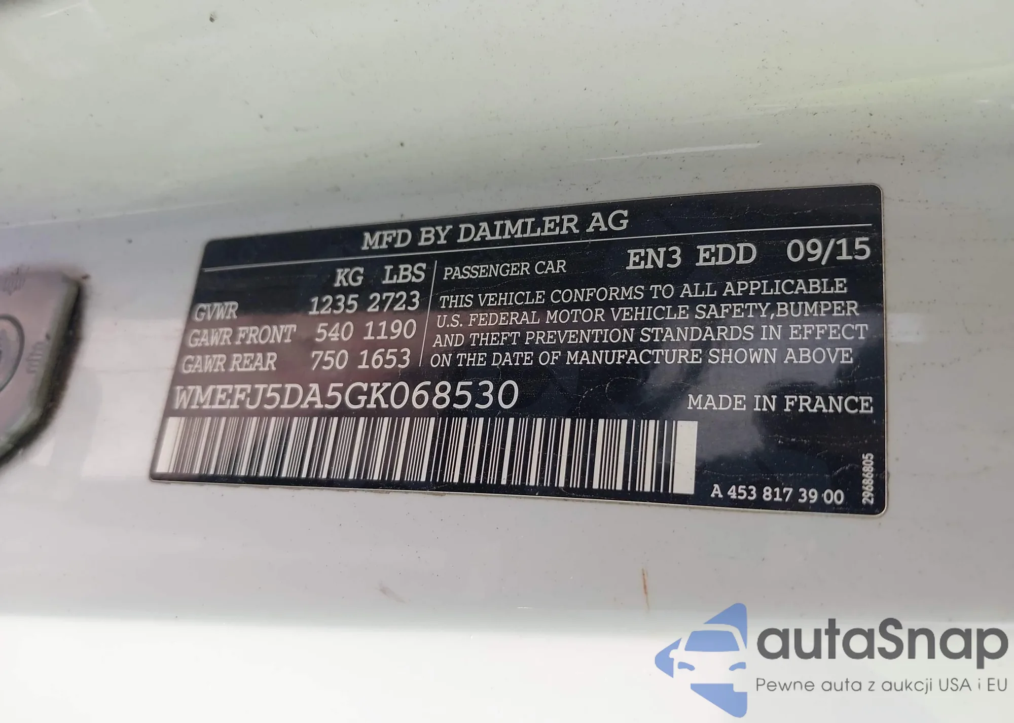 LOT: 43743150 VIN: WMEFJ5DA5GK068530