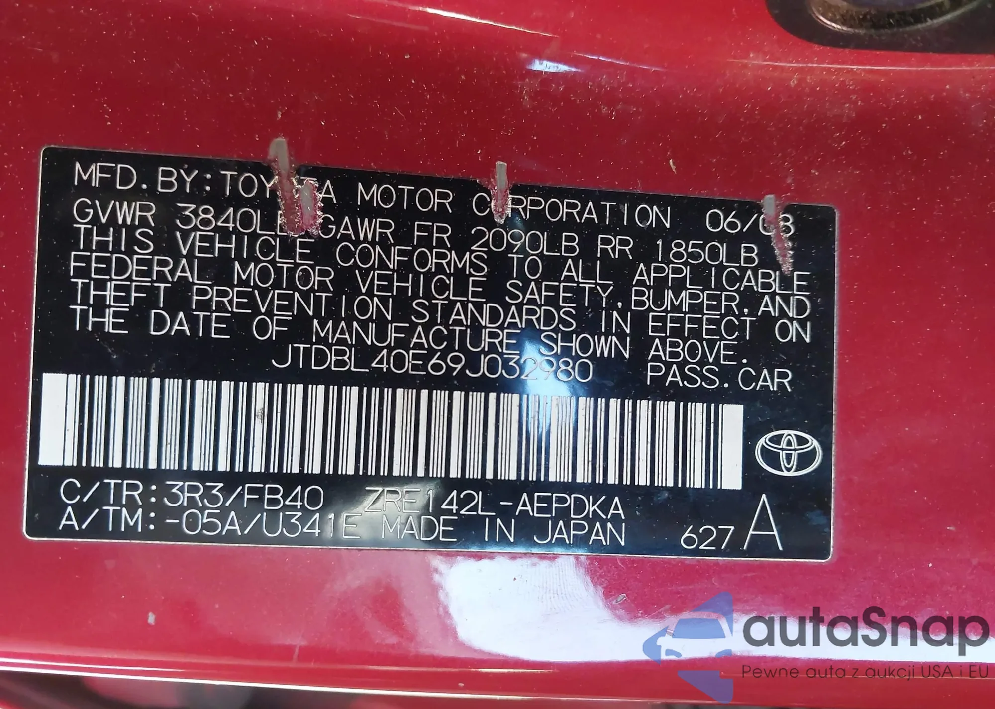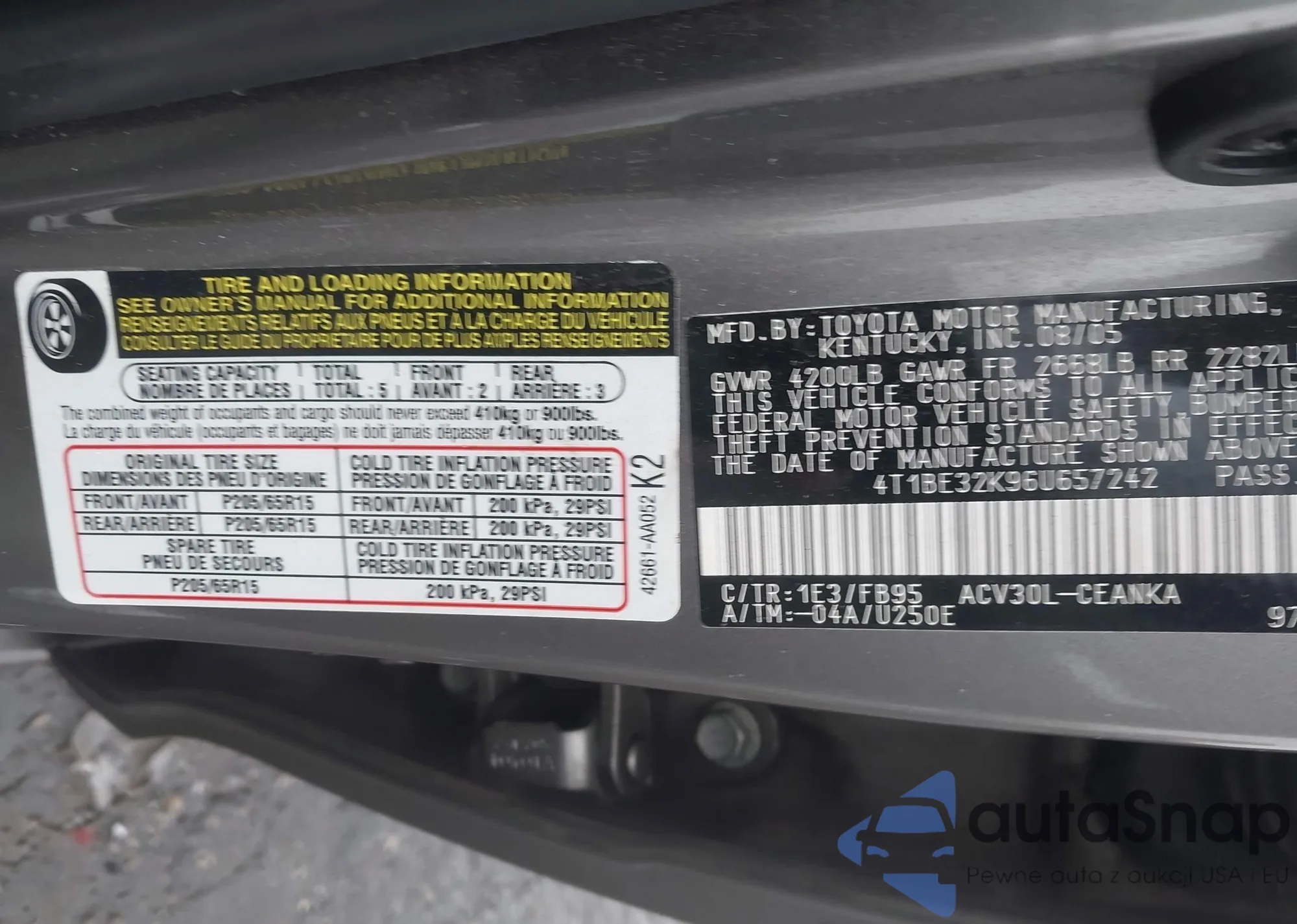 • VIN 4T1BE32K96U657242