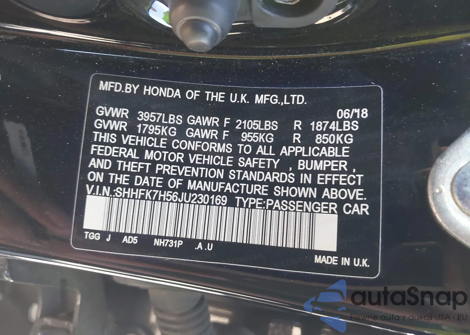 • VIN SHHFK7H56JU230169