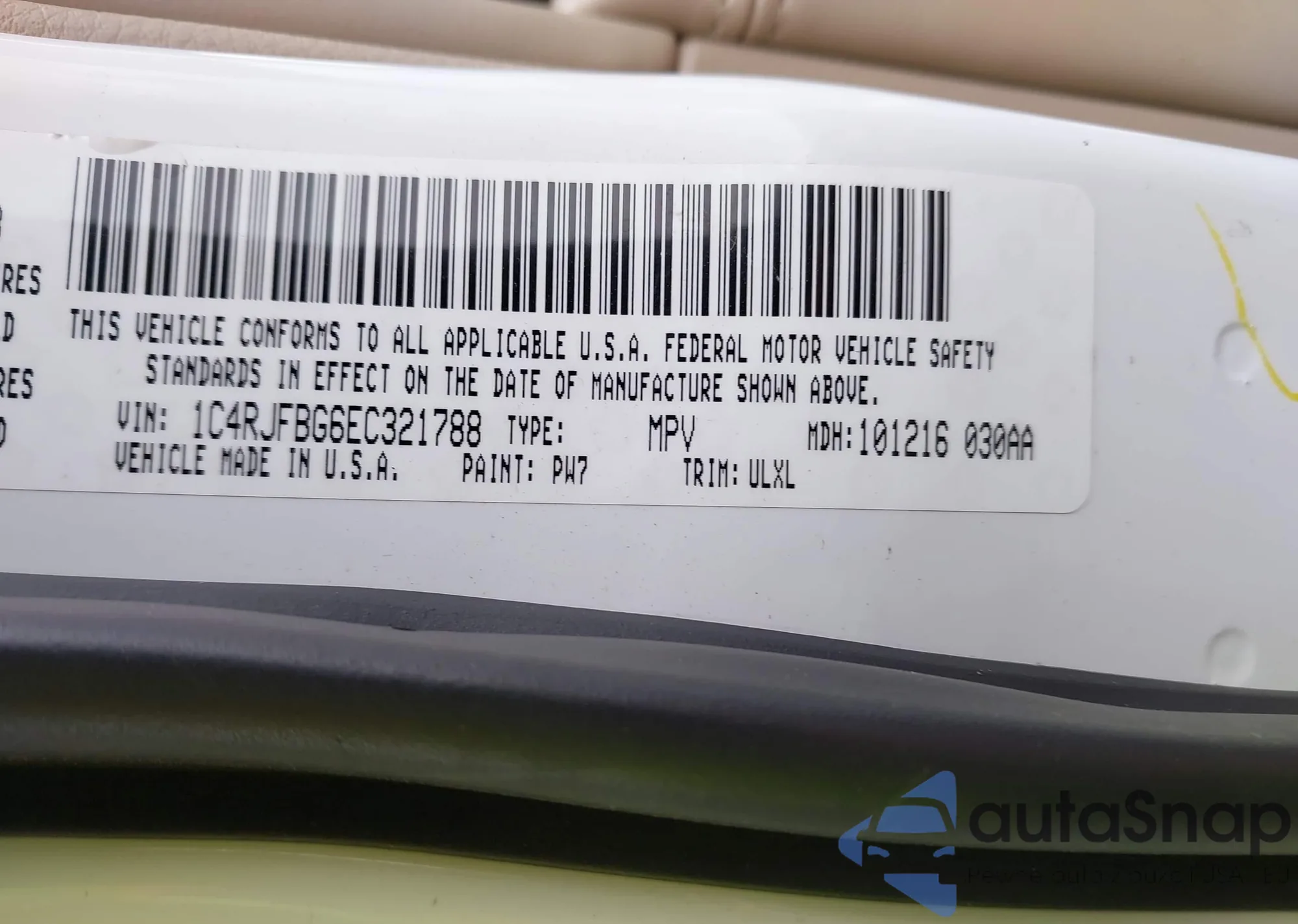 • VIN 1C4RJFBG6EC321788