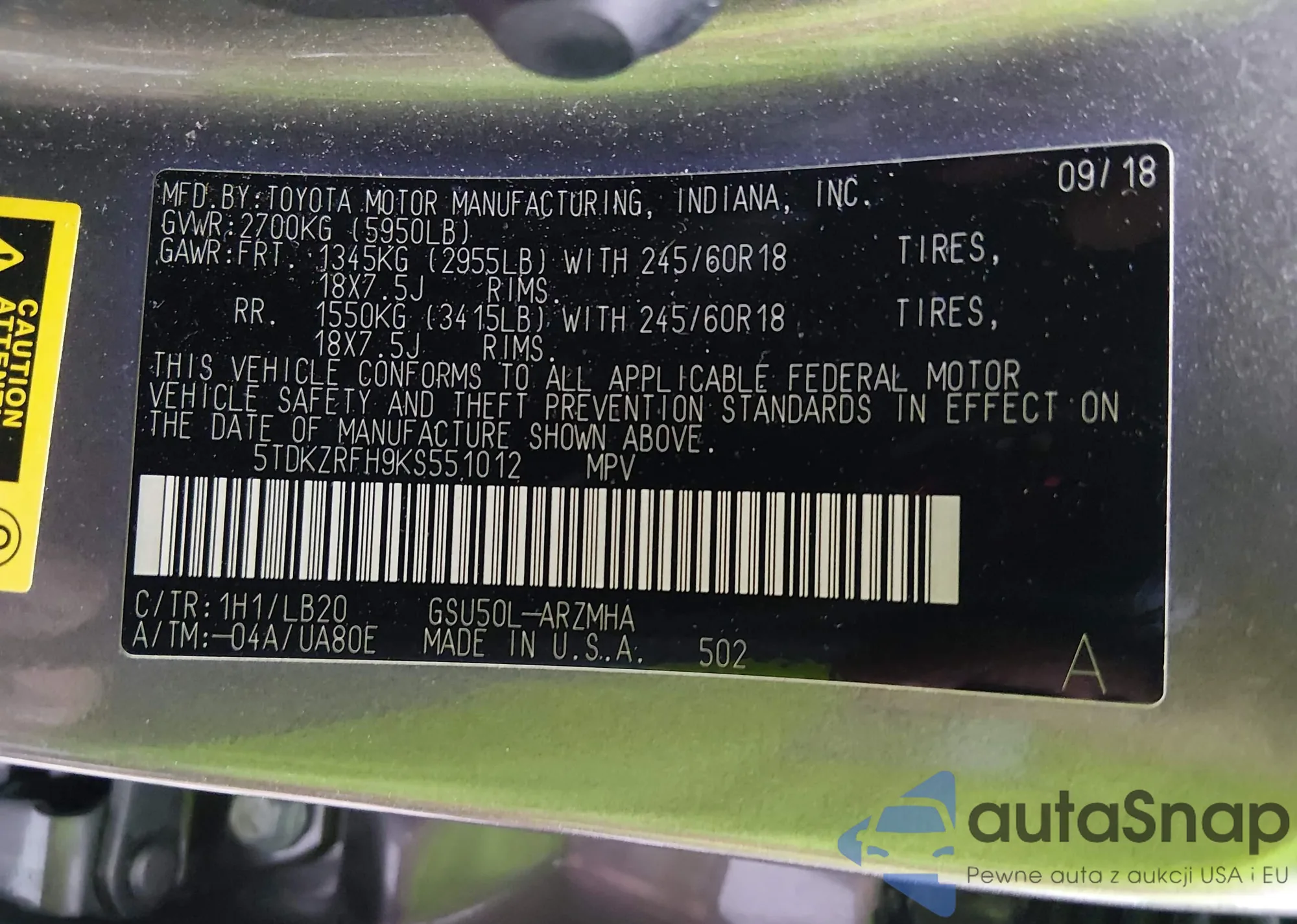 LOT: 44002172 VIN: 5TDKZRFH9KS551012