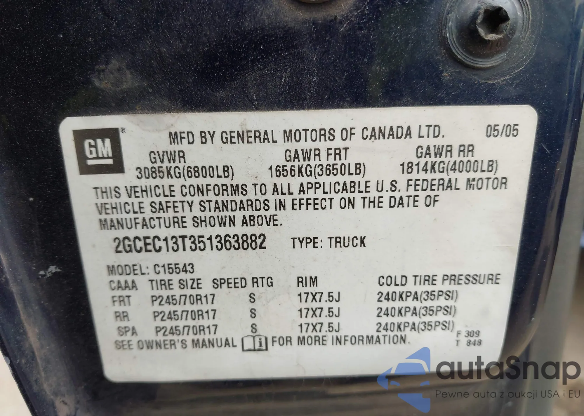 • VIN 1G1ZU54865F219146