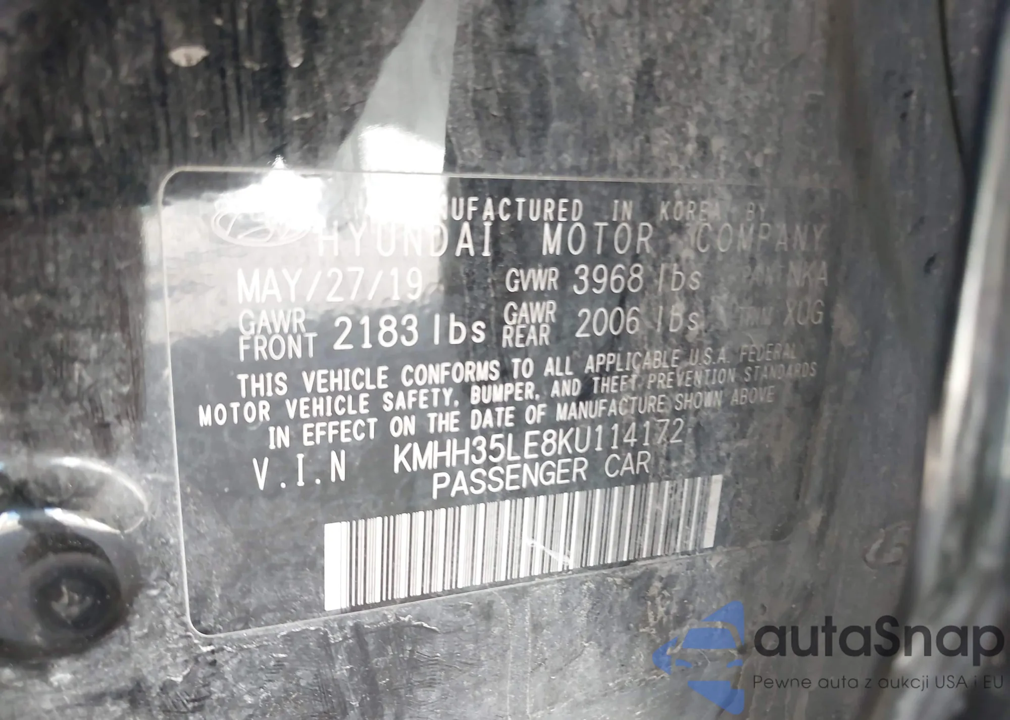 • VIN KMHH35LE8KU114172