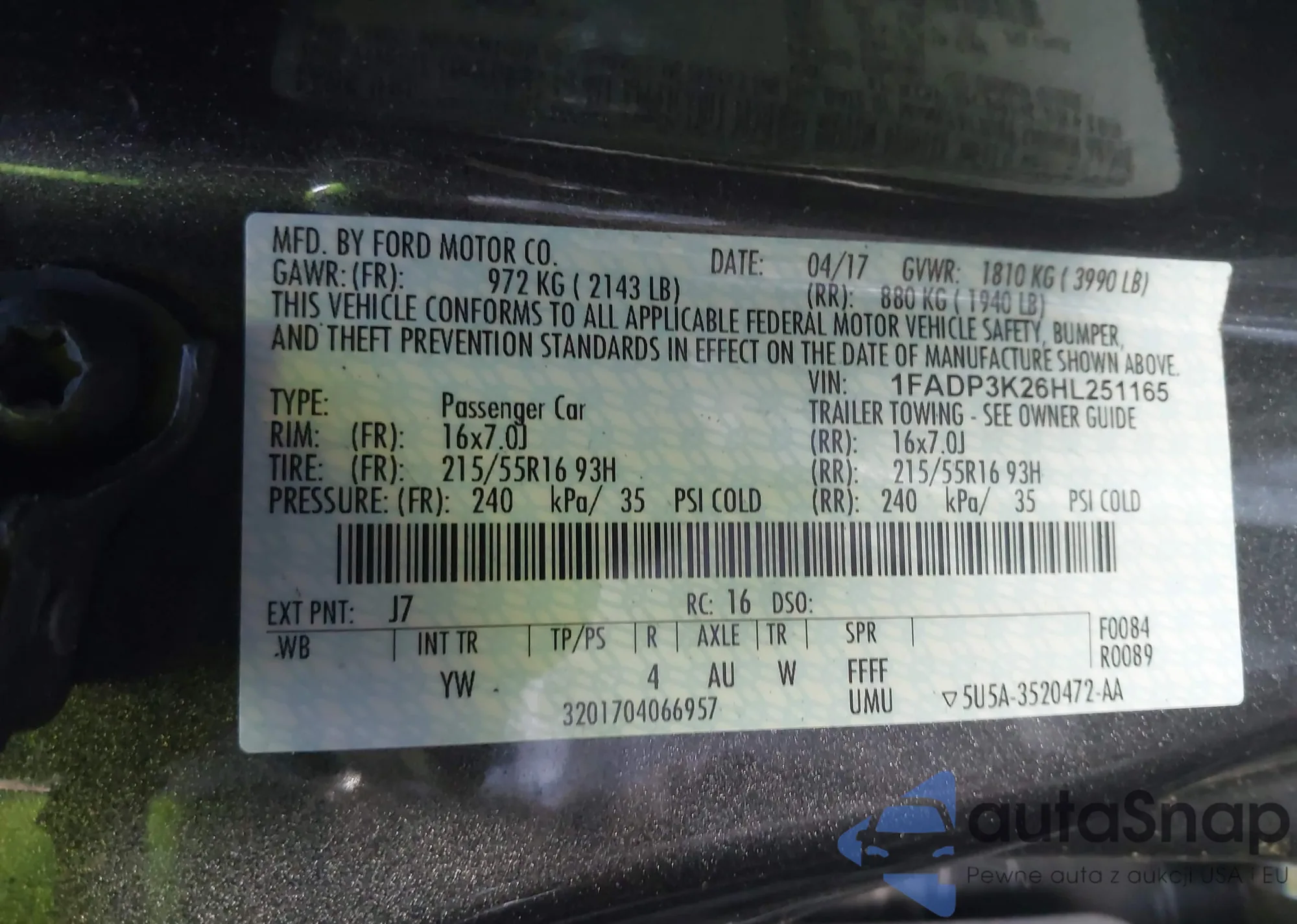 LOT: 44018982 VIN: WBA3B5G58DNS05187