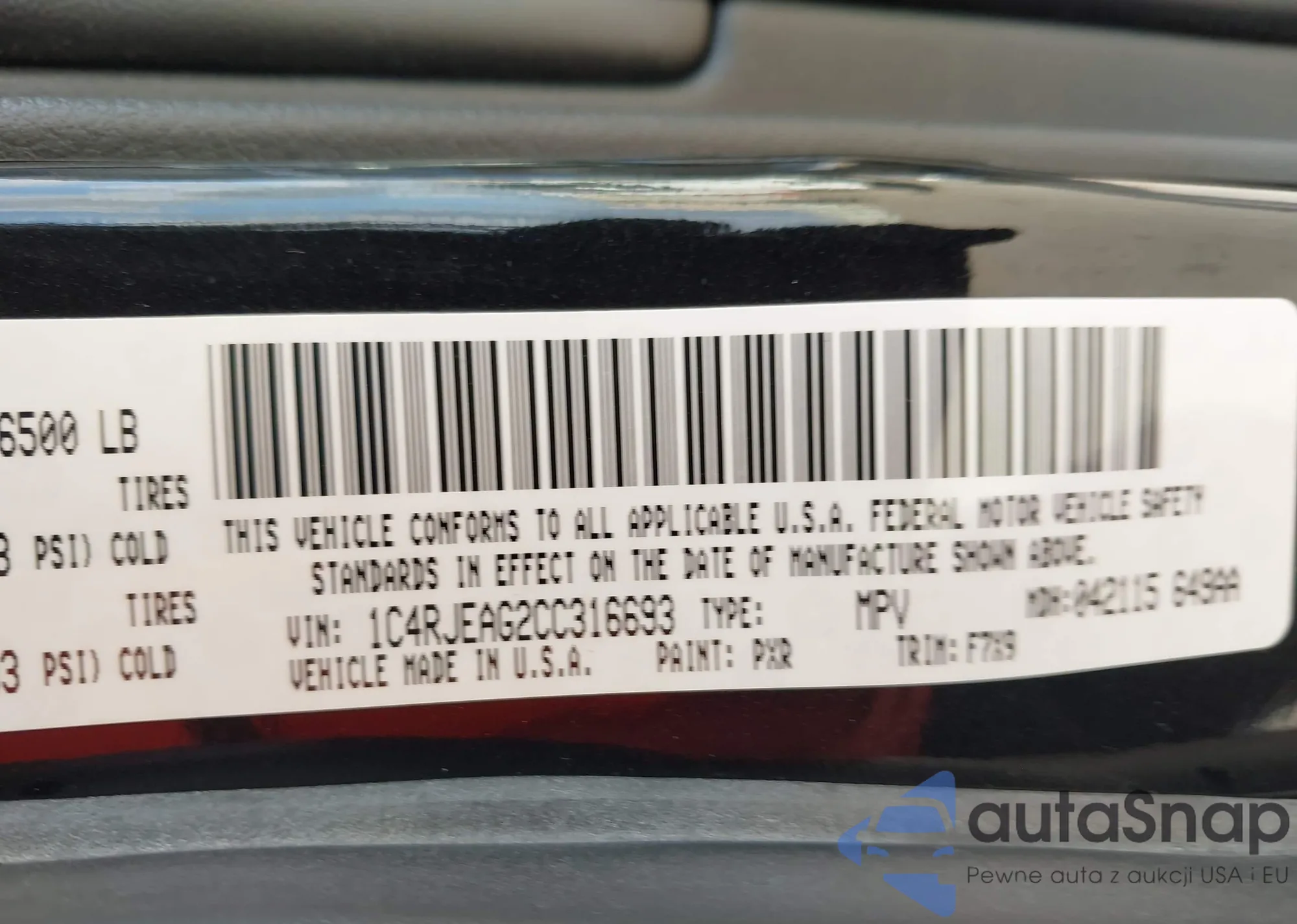 • VIN 1C4RJEAG2CC316693