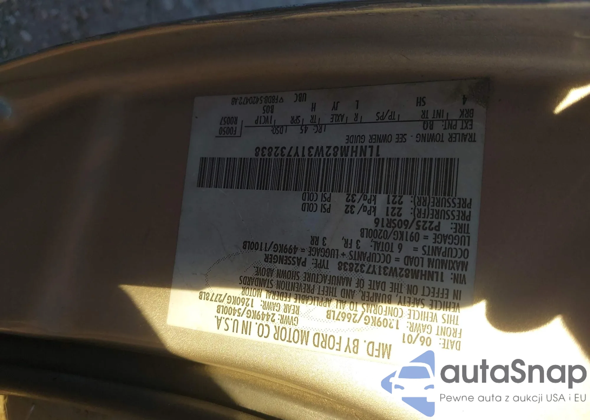 LOT: 44044815 VIN: 1LNHM82W31Y732838