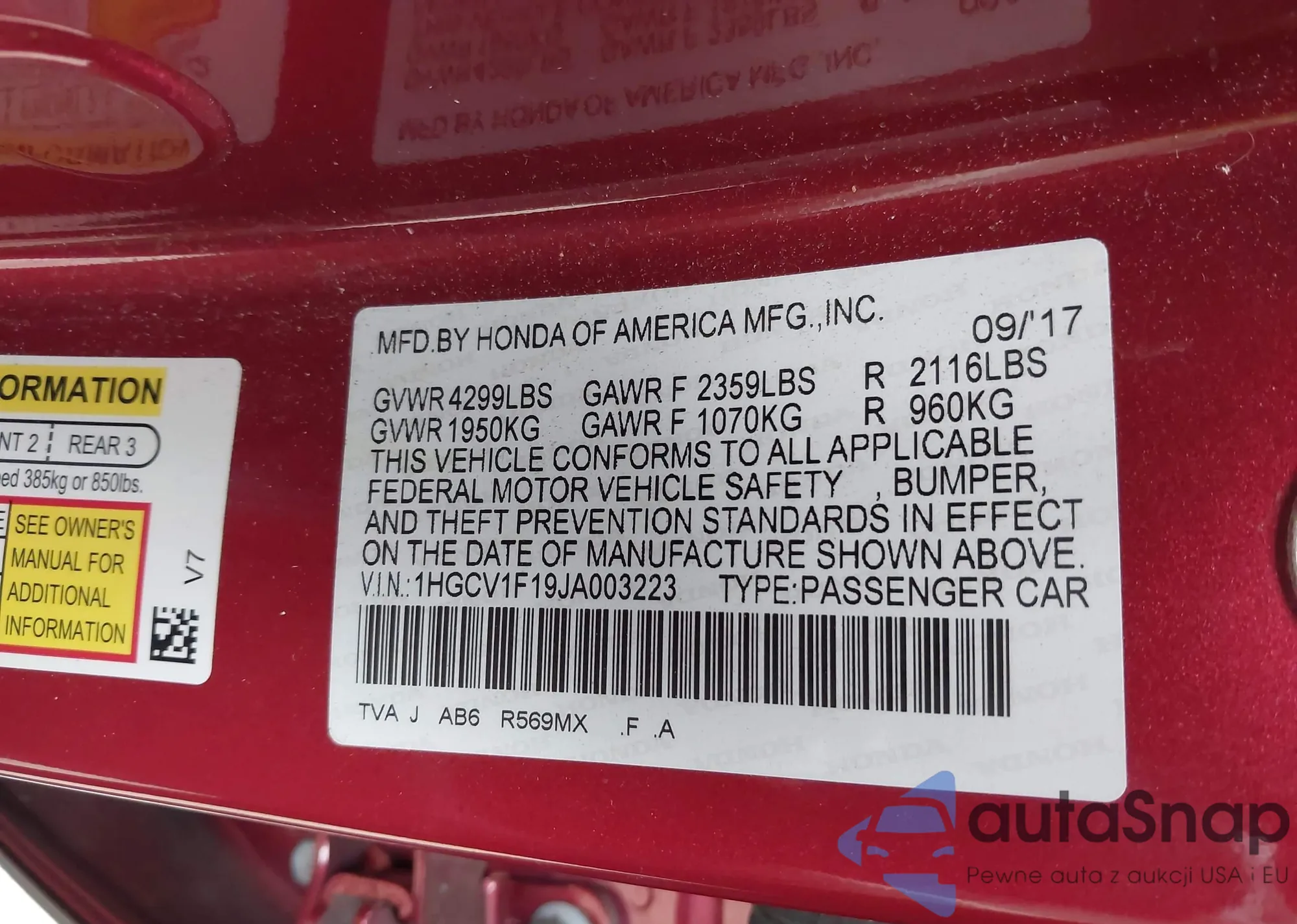 • VIN 1HGCV1F19JA003223
