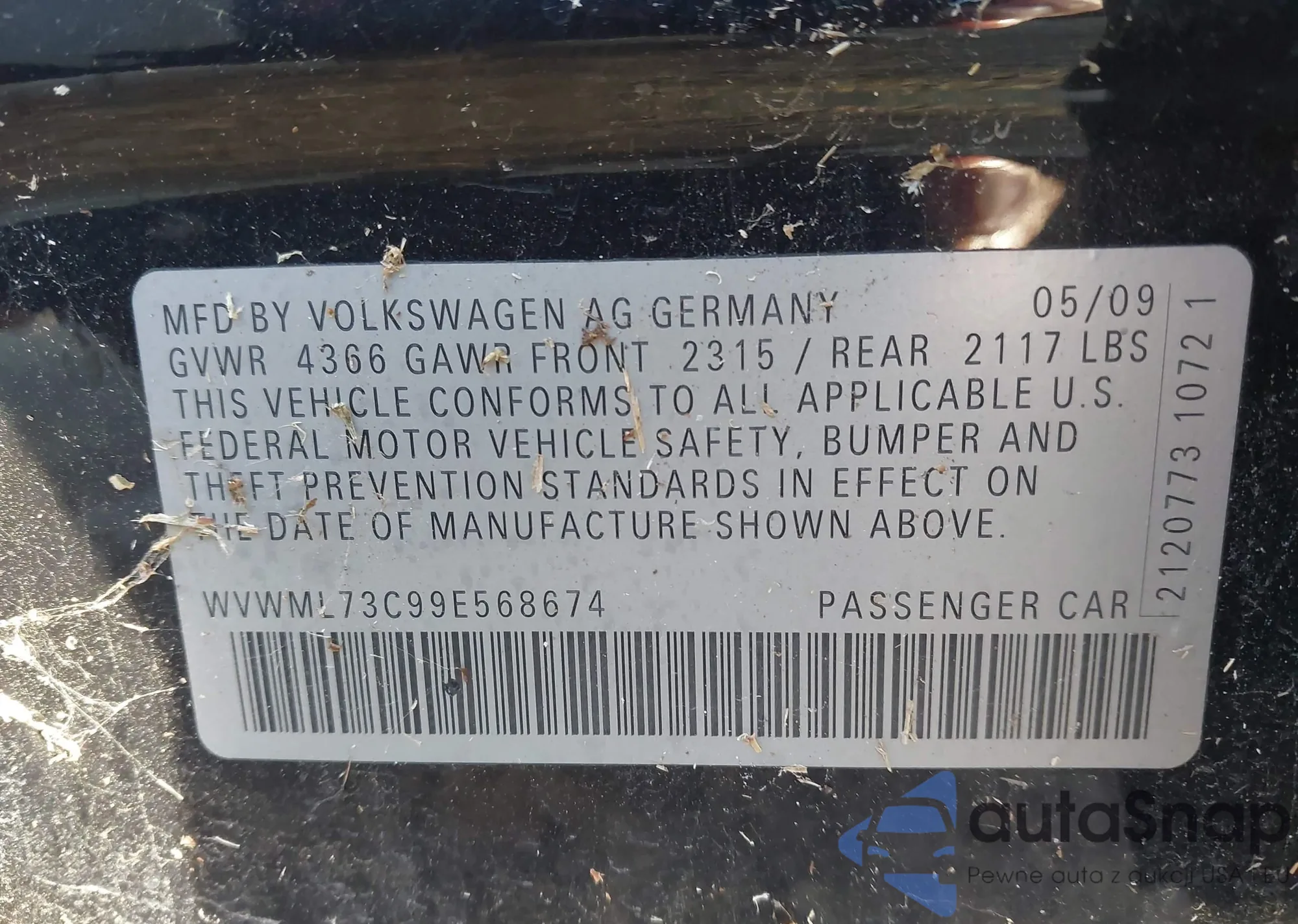 LOT: 43822918 VIN: WVWML73C99E568674
