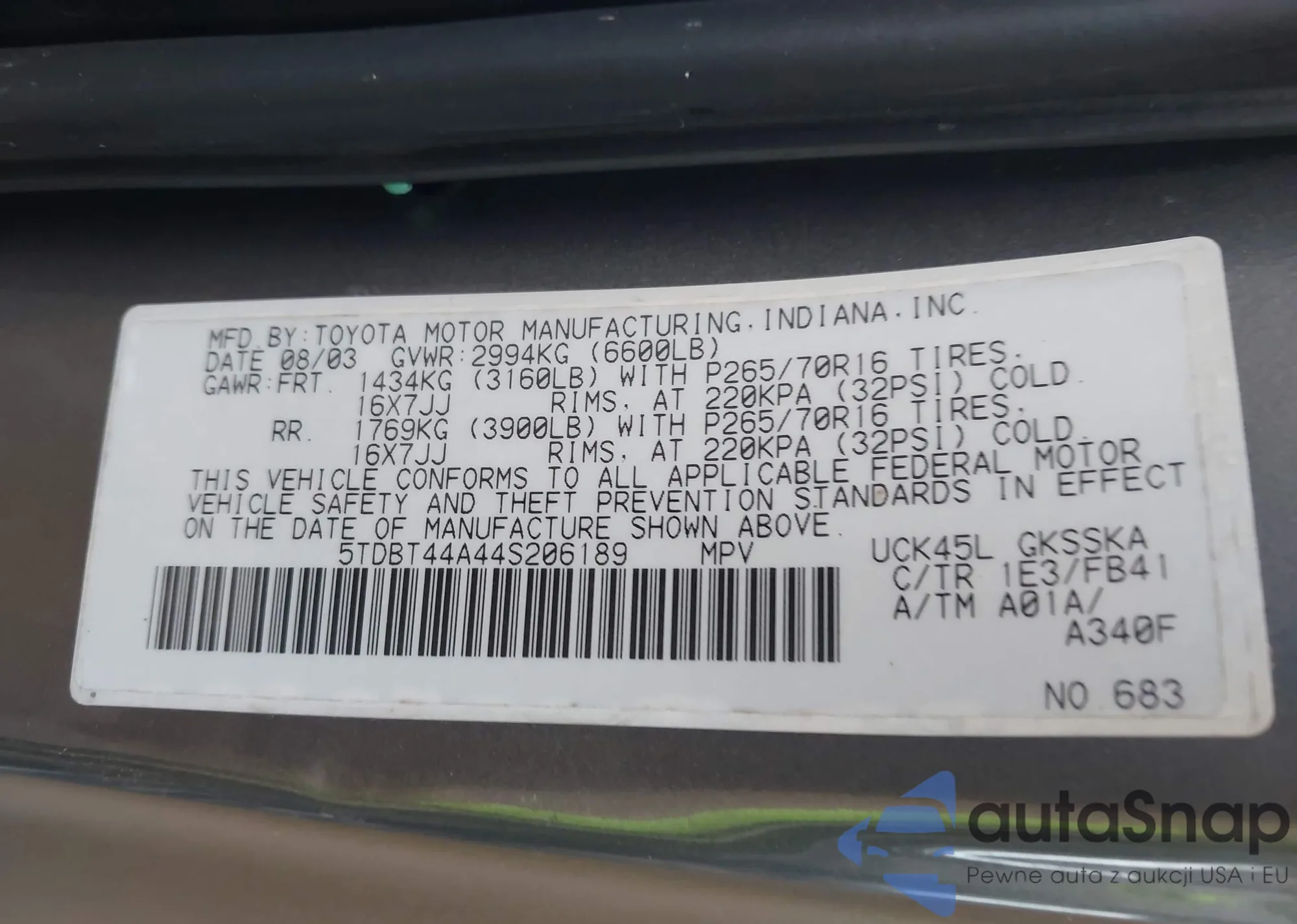 LOT: 43819453 VIN: JTEDW21A060005870