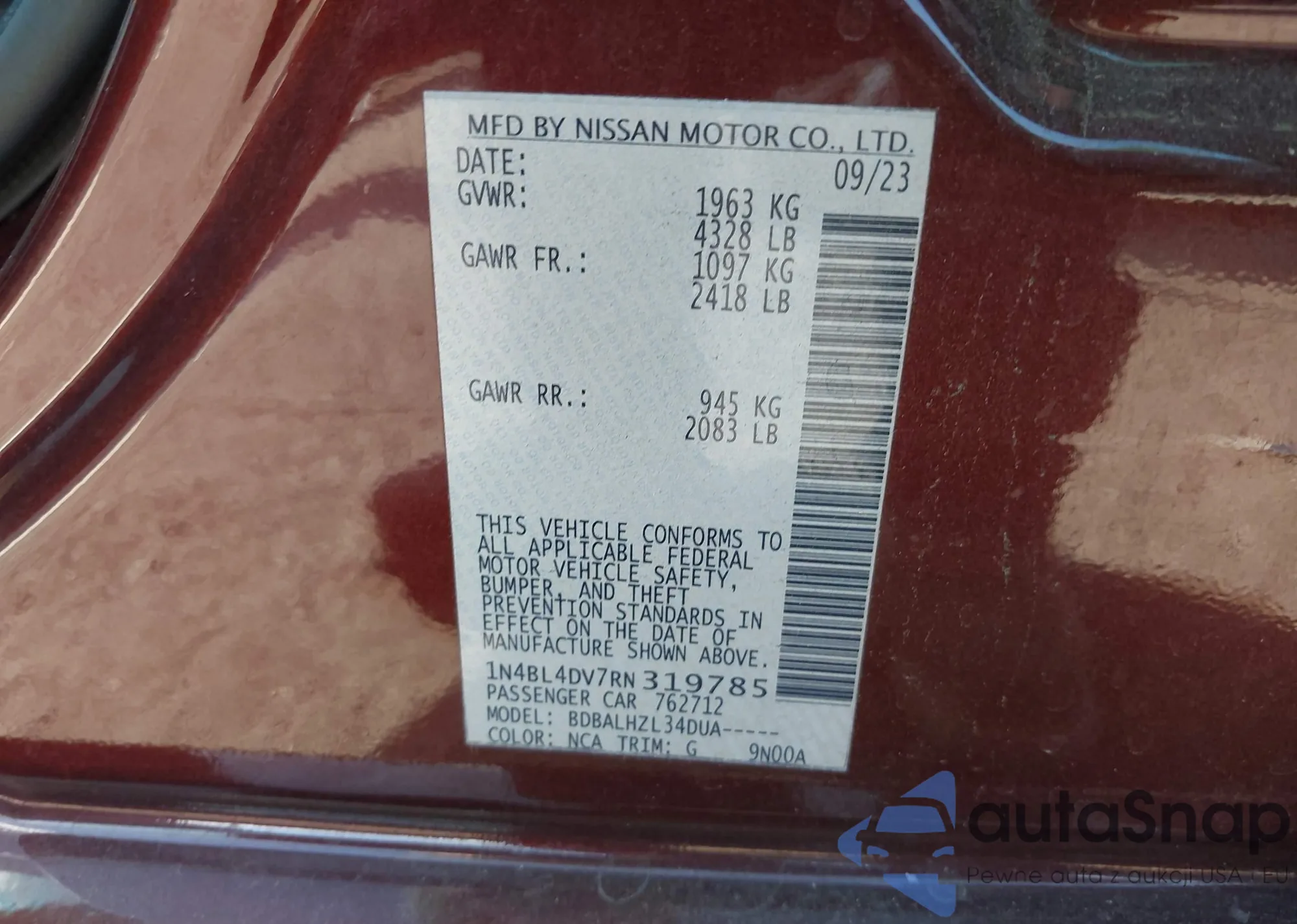 • VIN 1N4BL4DV7RN319785