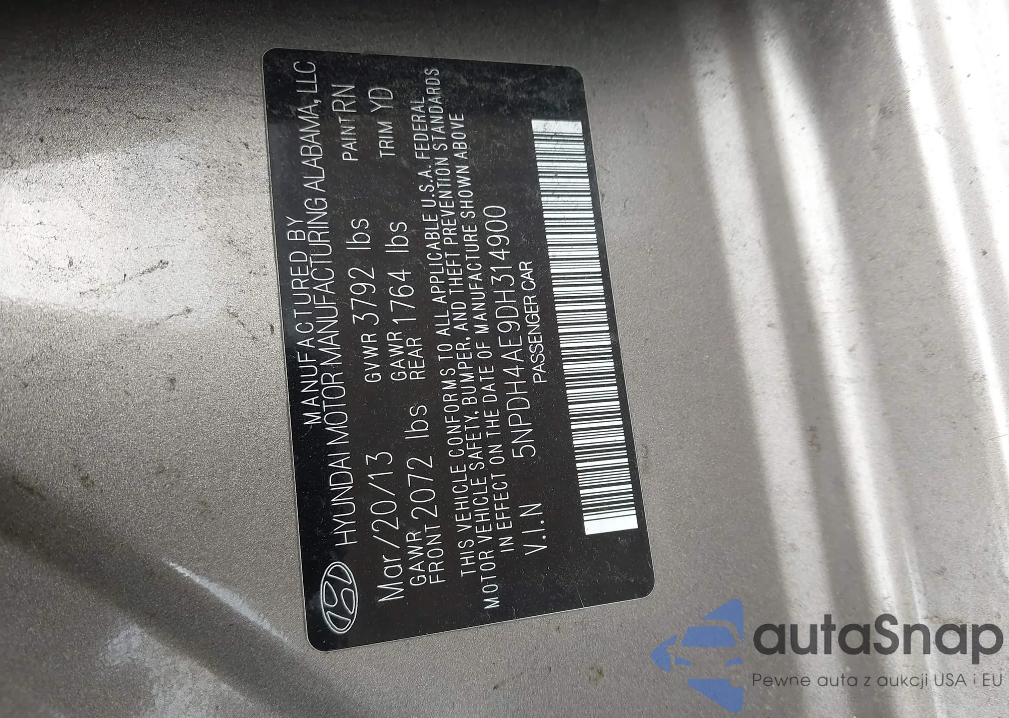 LOT: 44068661 VIN: 5NPDH4AE9DH314900