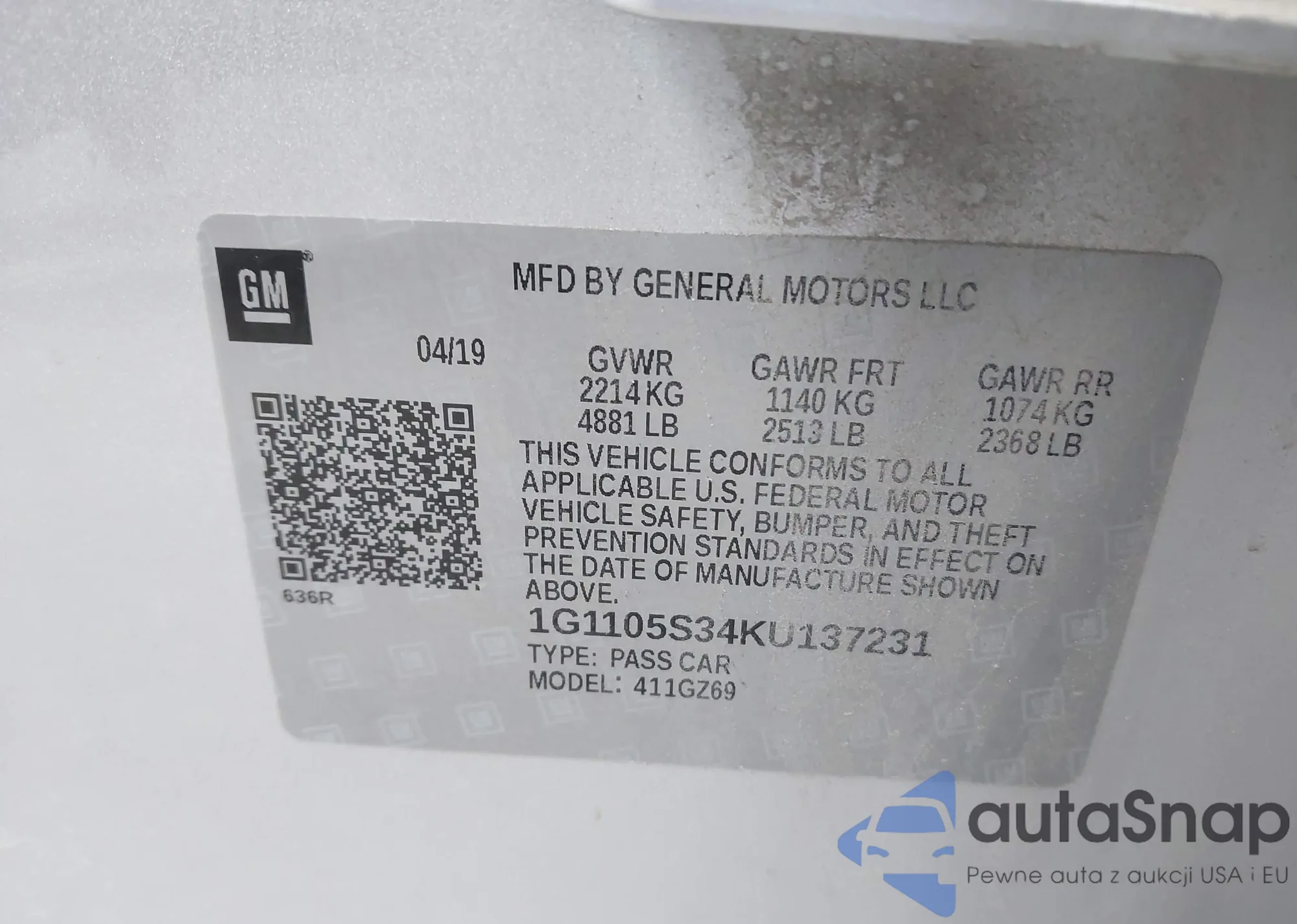 • VIN 1G1105S34KU137231