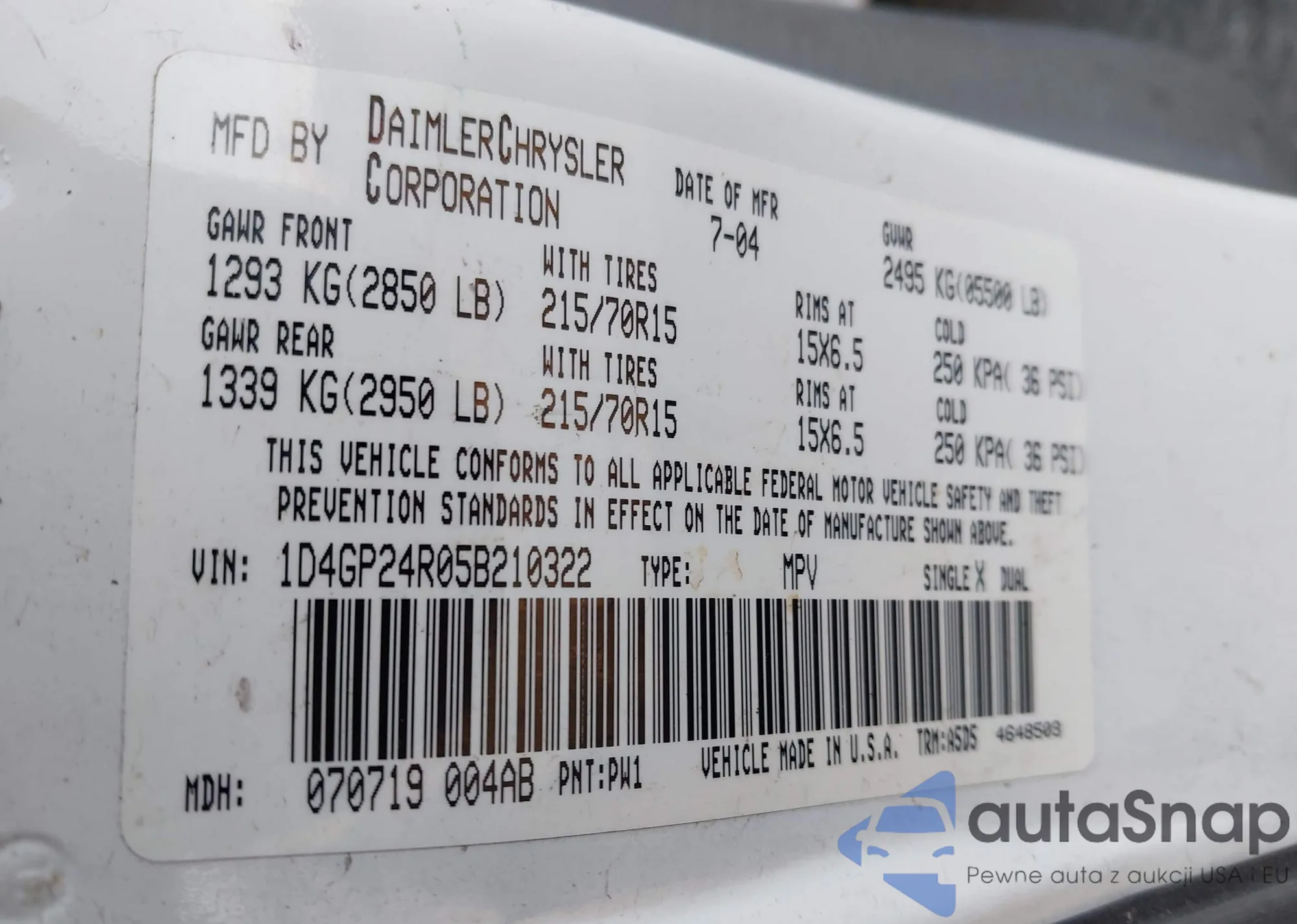 • VIN 1D4GP24R05B210322