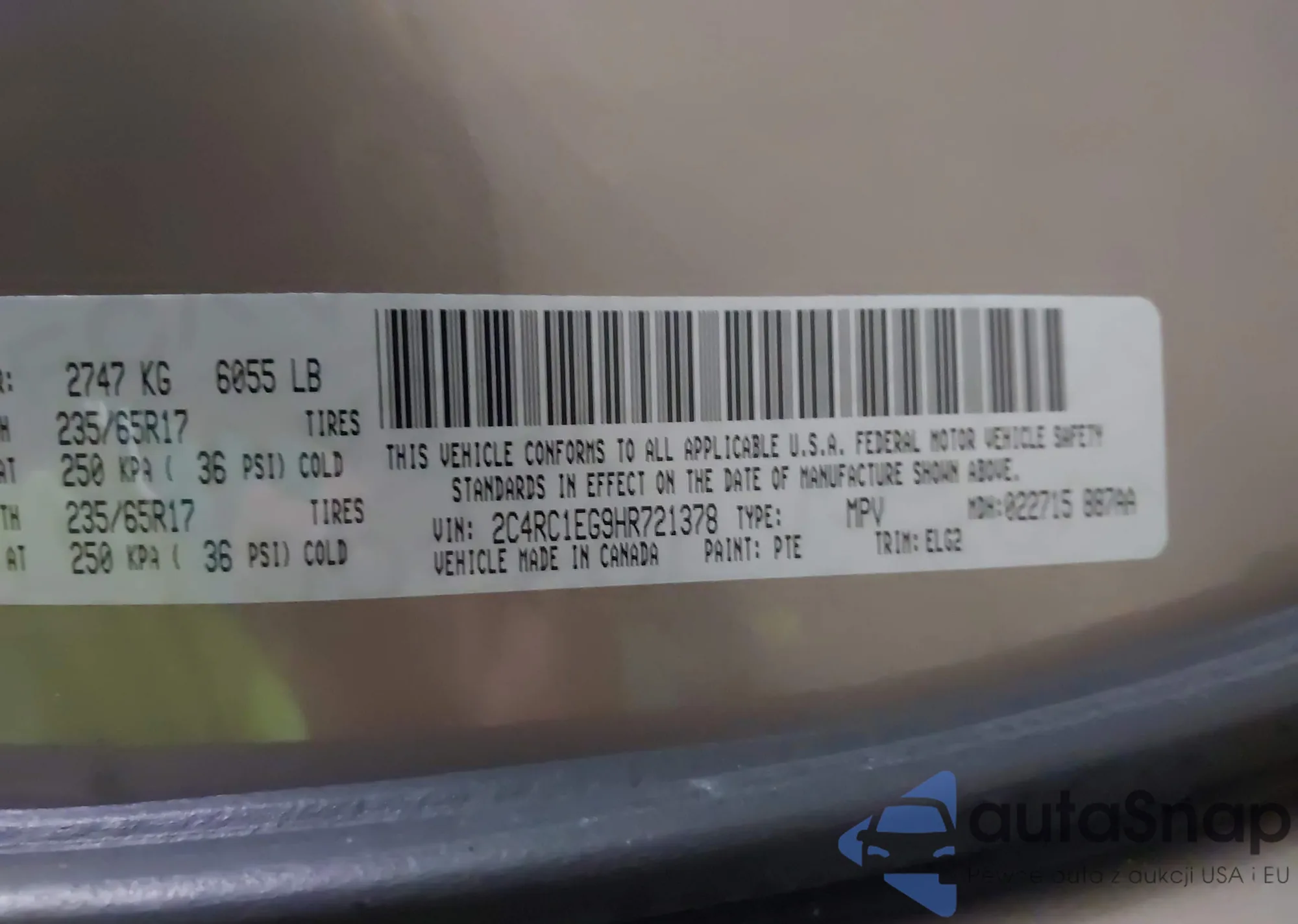 • VIN 2C4RC1EG9HR721378