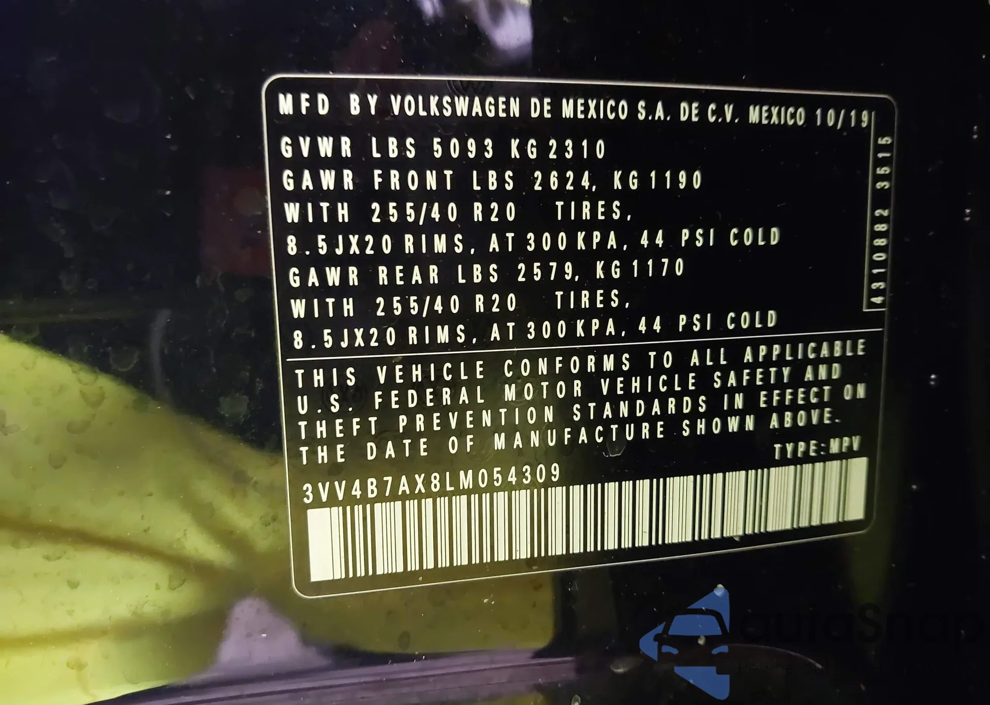 • VIN 3VV4B7AX8LM054309