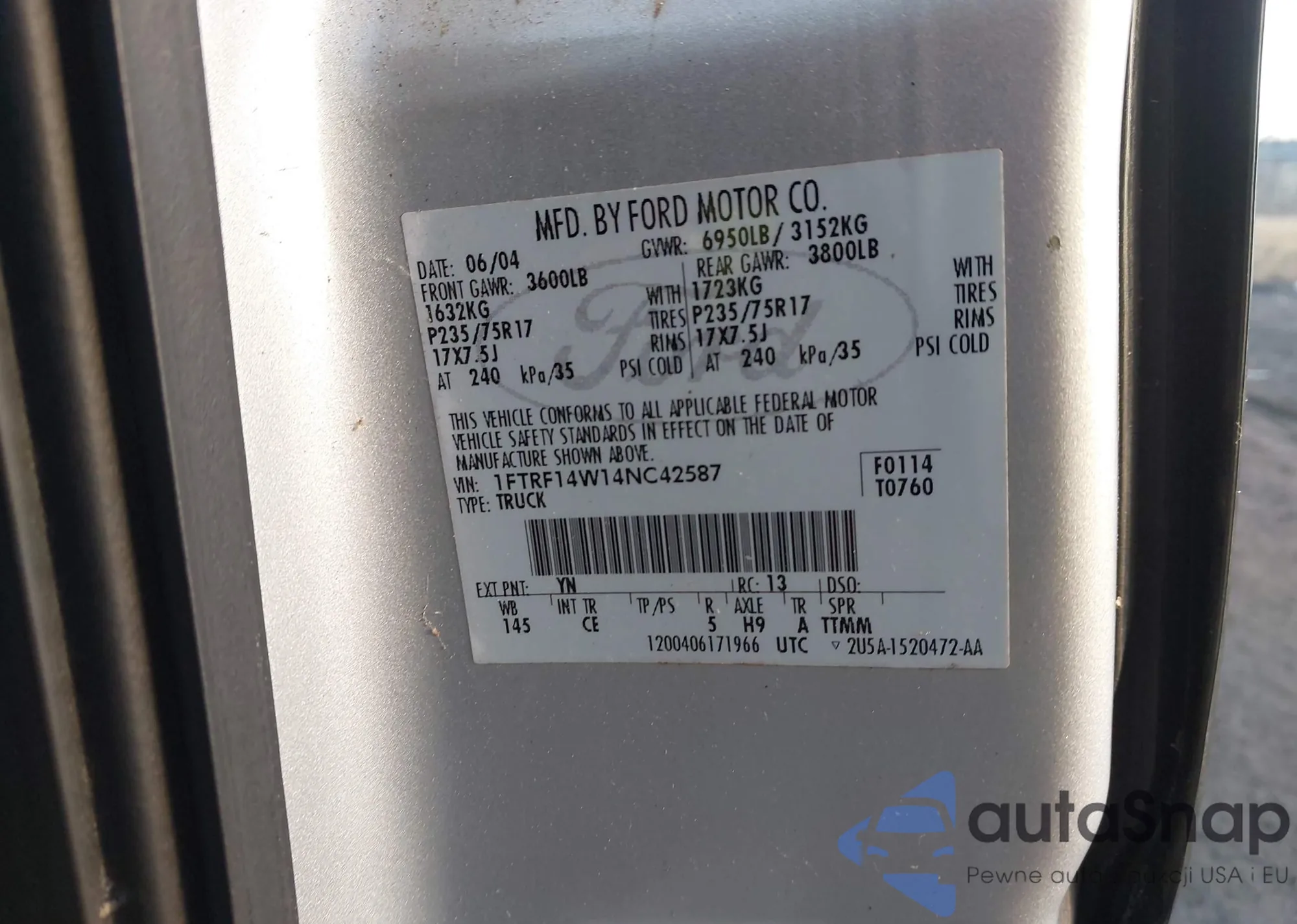 • VIN 1FTRF14W14NC42587