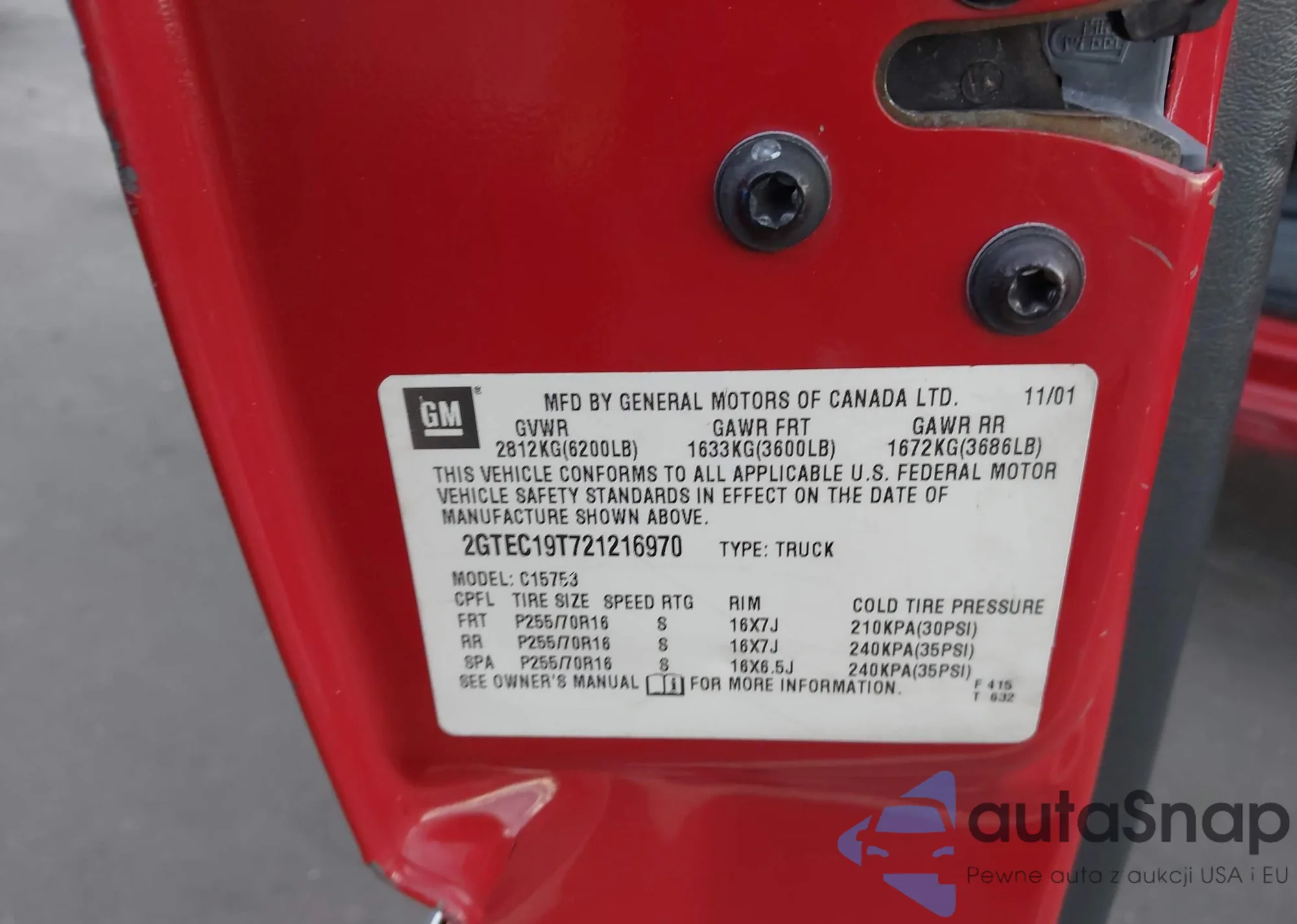 • VIN 2GTEC19T721216970