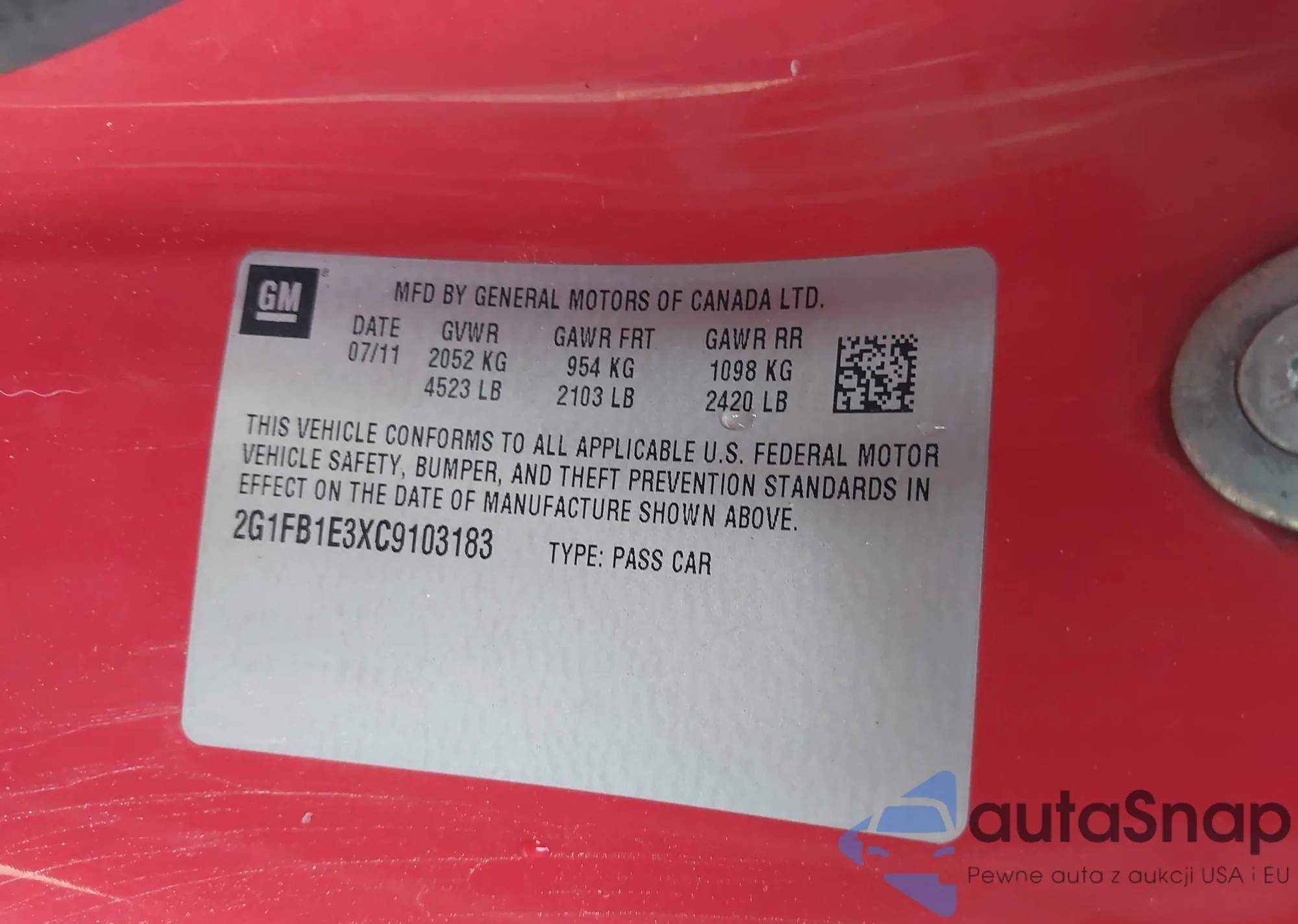 • VIN 2G1FB1E3XC9103183