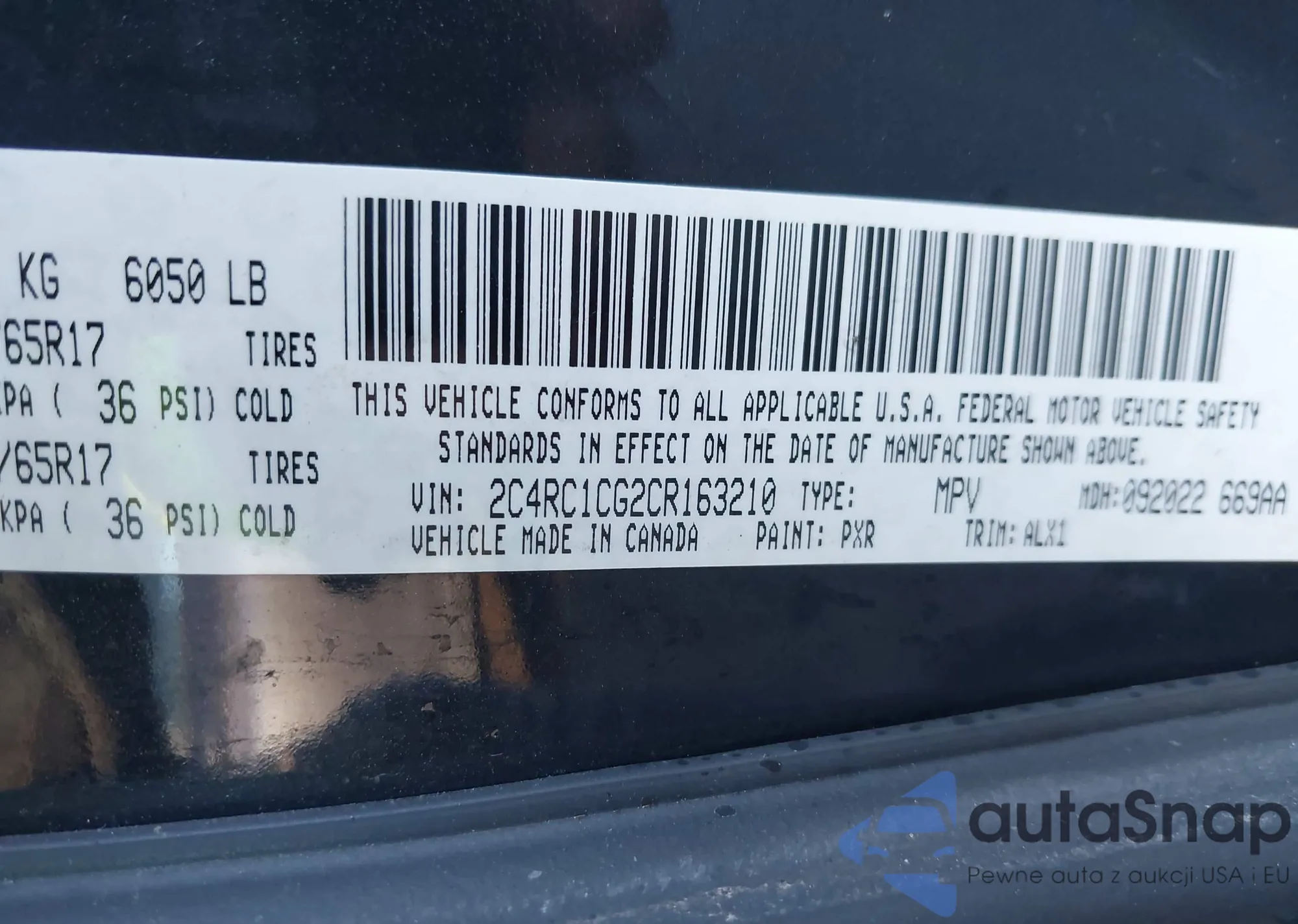 • VIN 2C4RC1CG2CR163210