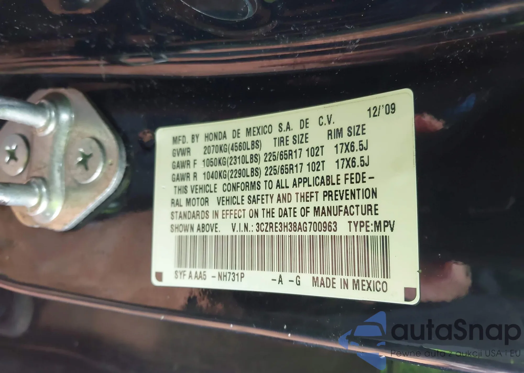 • VIN 3CZRE3H38AG700963
