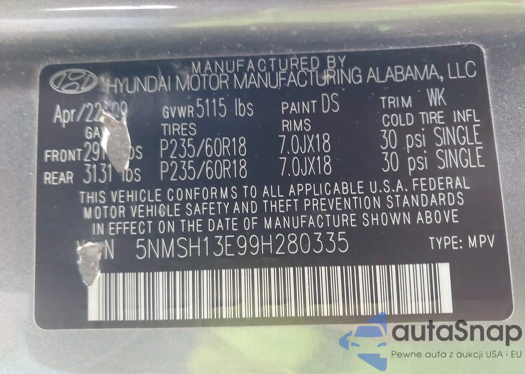 • Damage: Left side