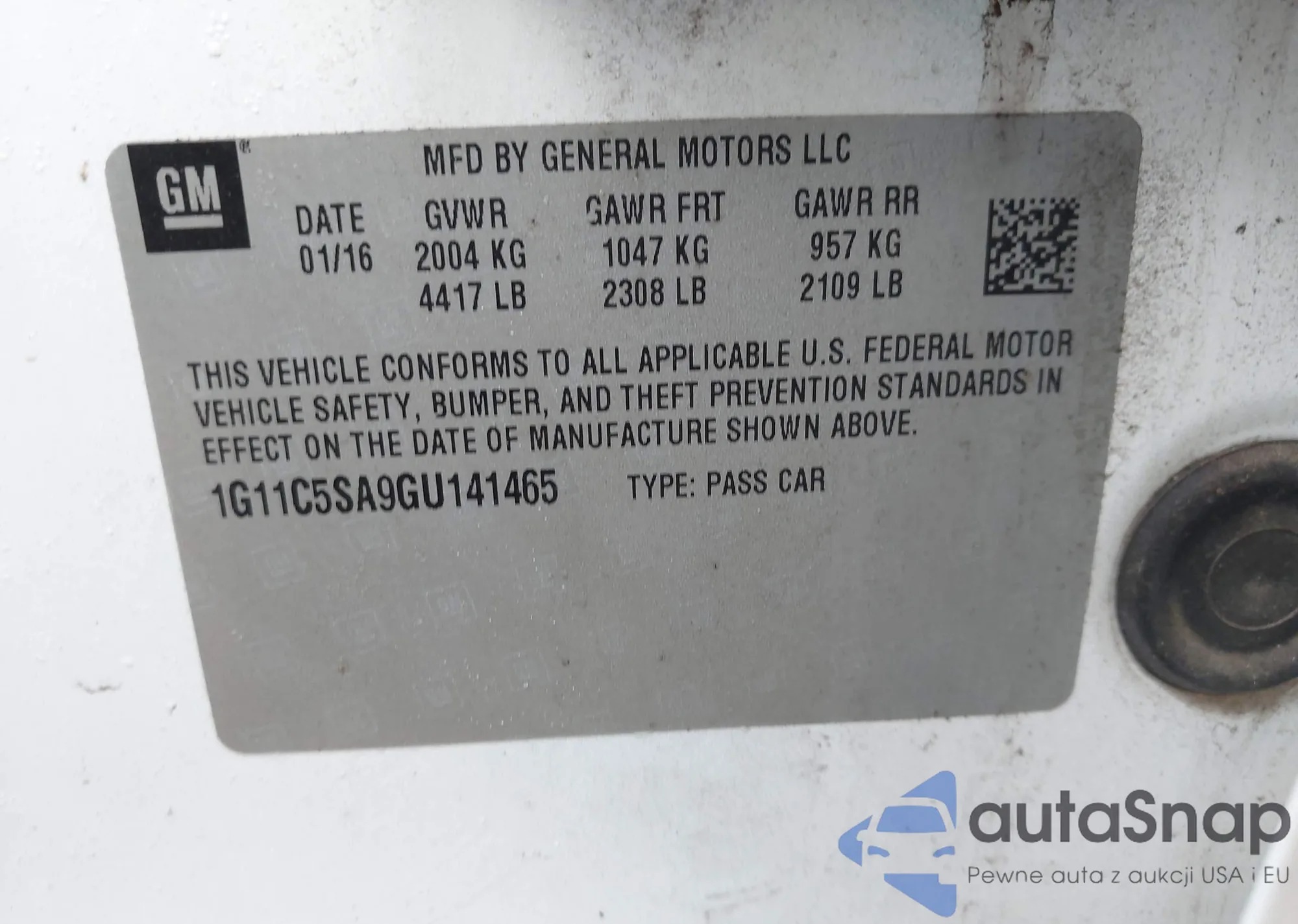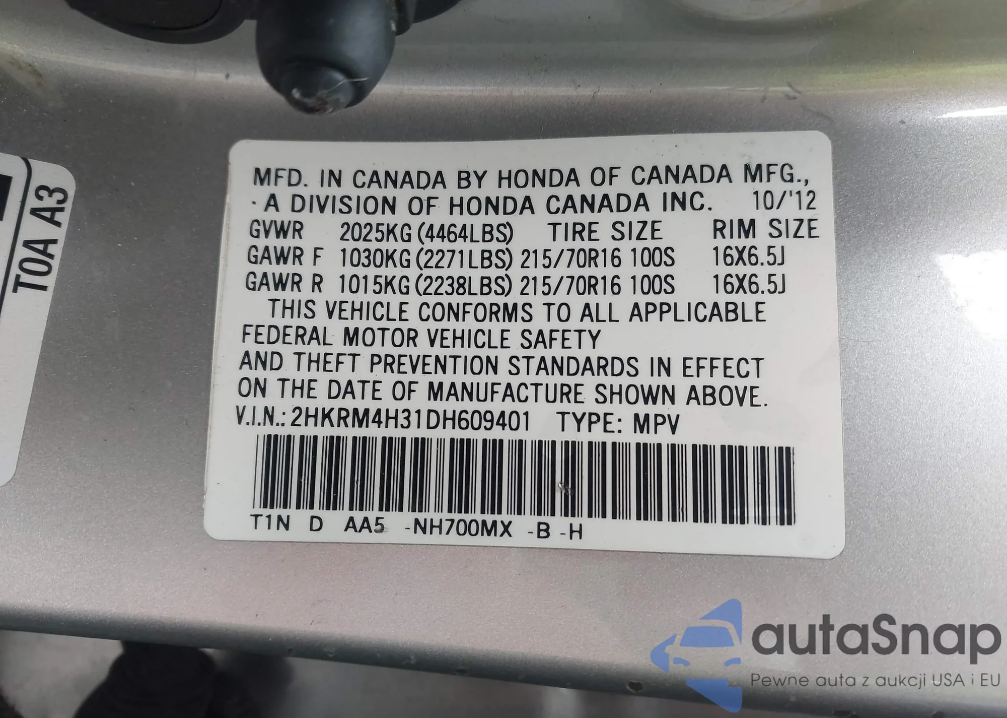 LOT: 43869143 VIN: 1HGCP2F60CA031202