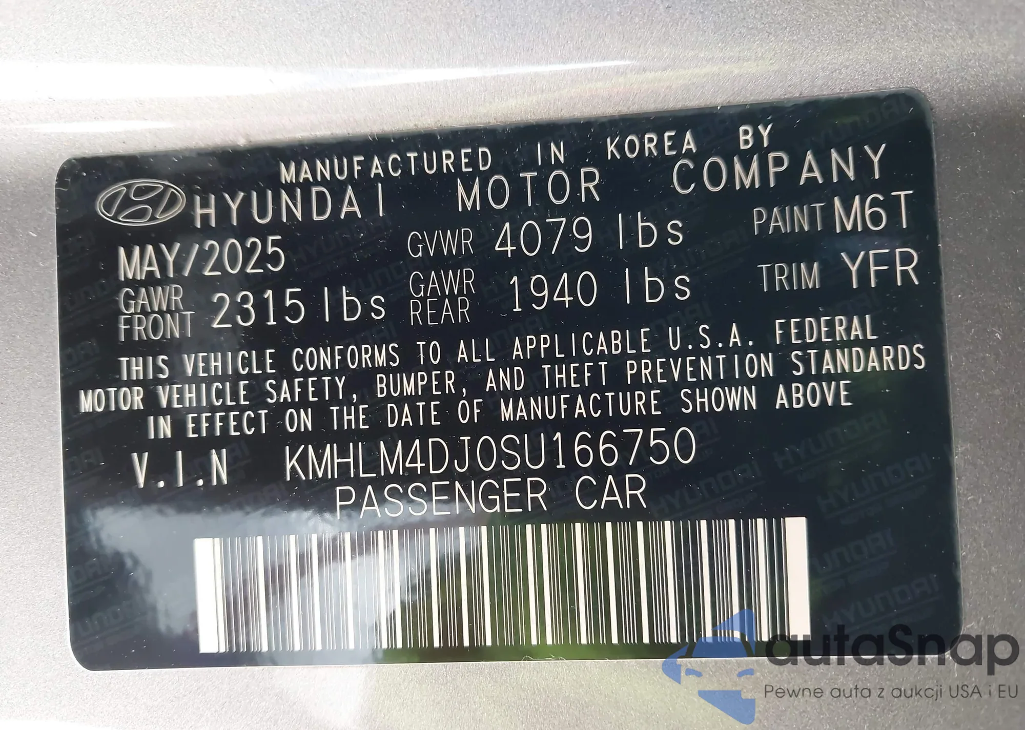 LOT: 44183410 VIN: KMHLM4DJ0SU166750