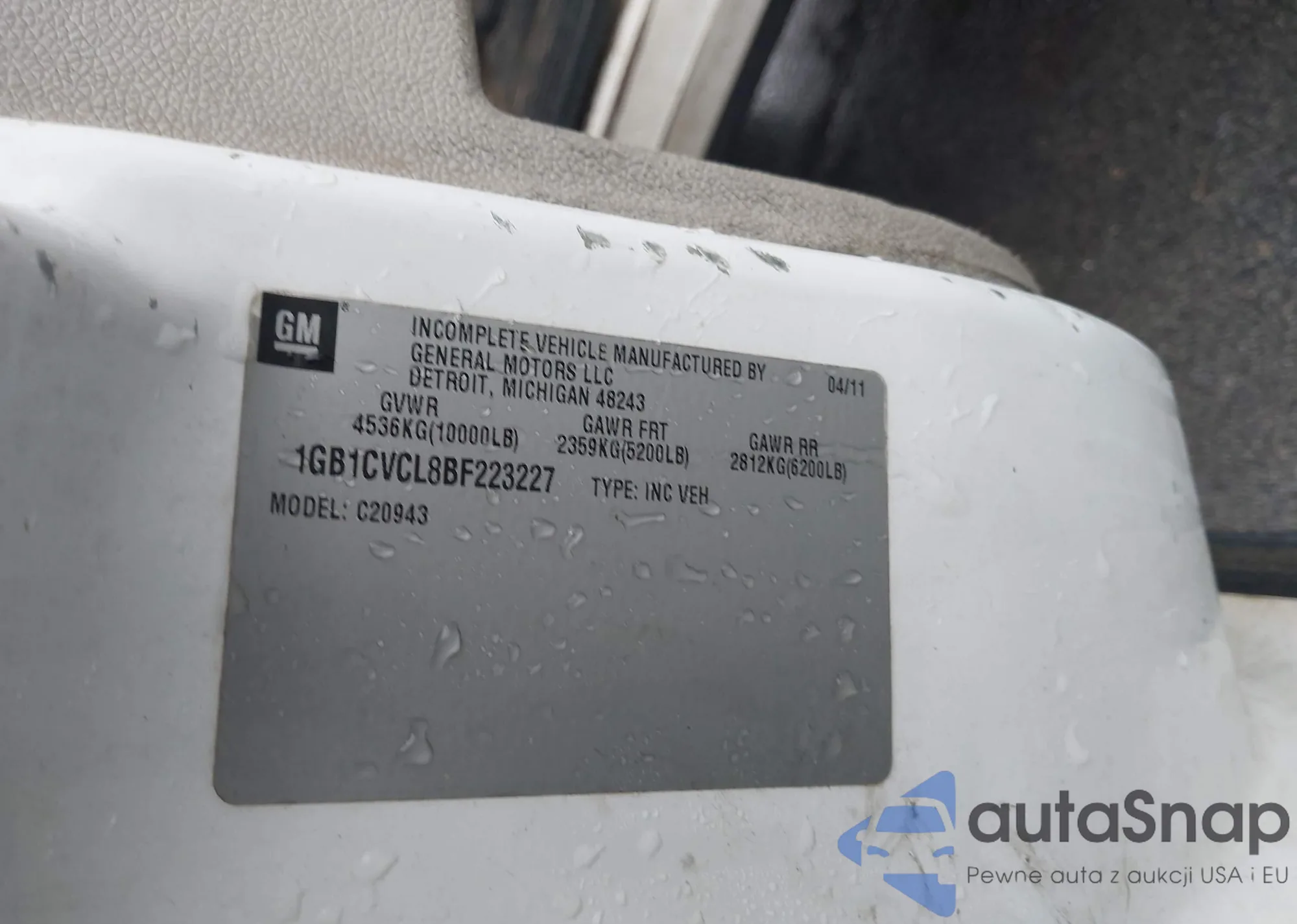 LOT: 43865927 VIN: 1GB1CVCL8BF223227