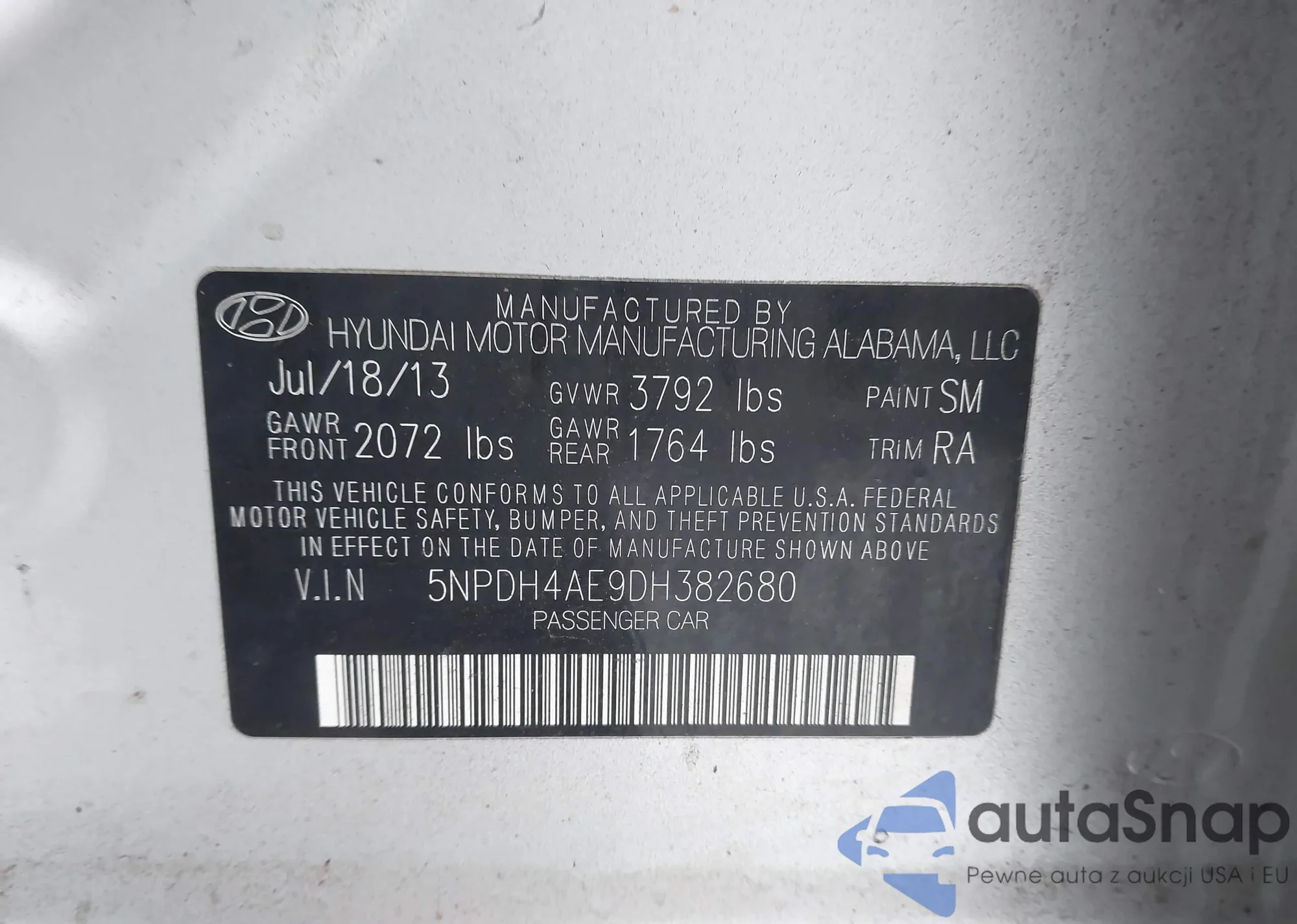 • VIN 5NPDH4AE9DH382680