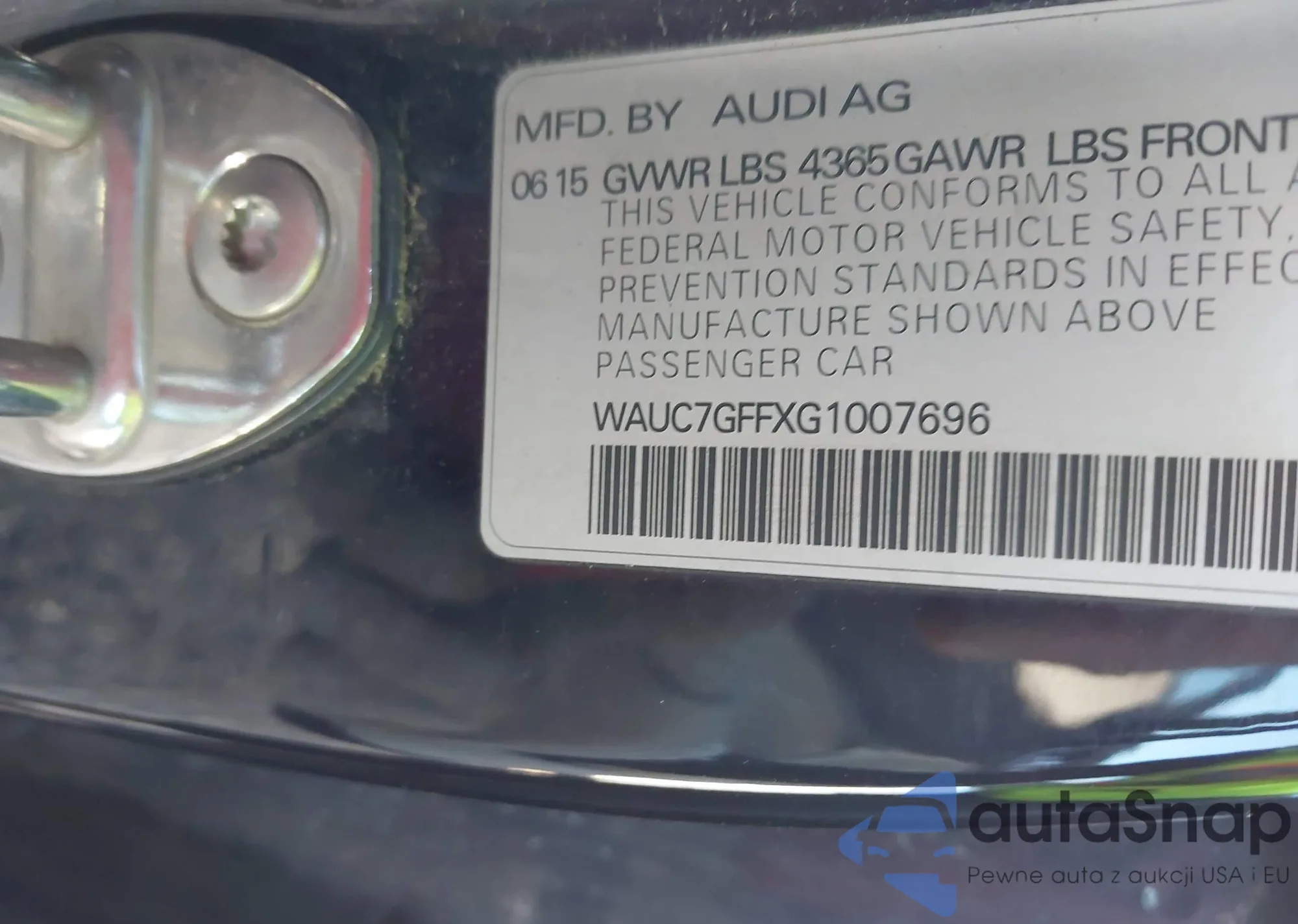 • VIN WAUC7GFFXG1007696