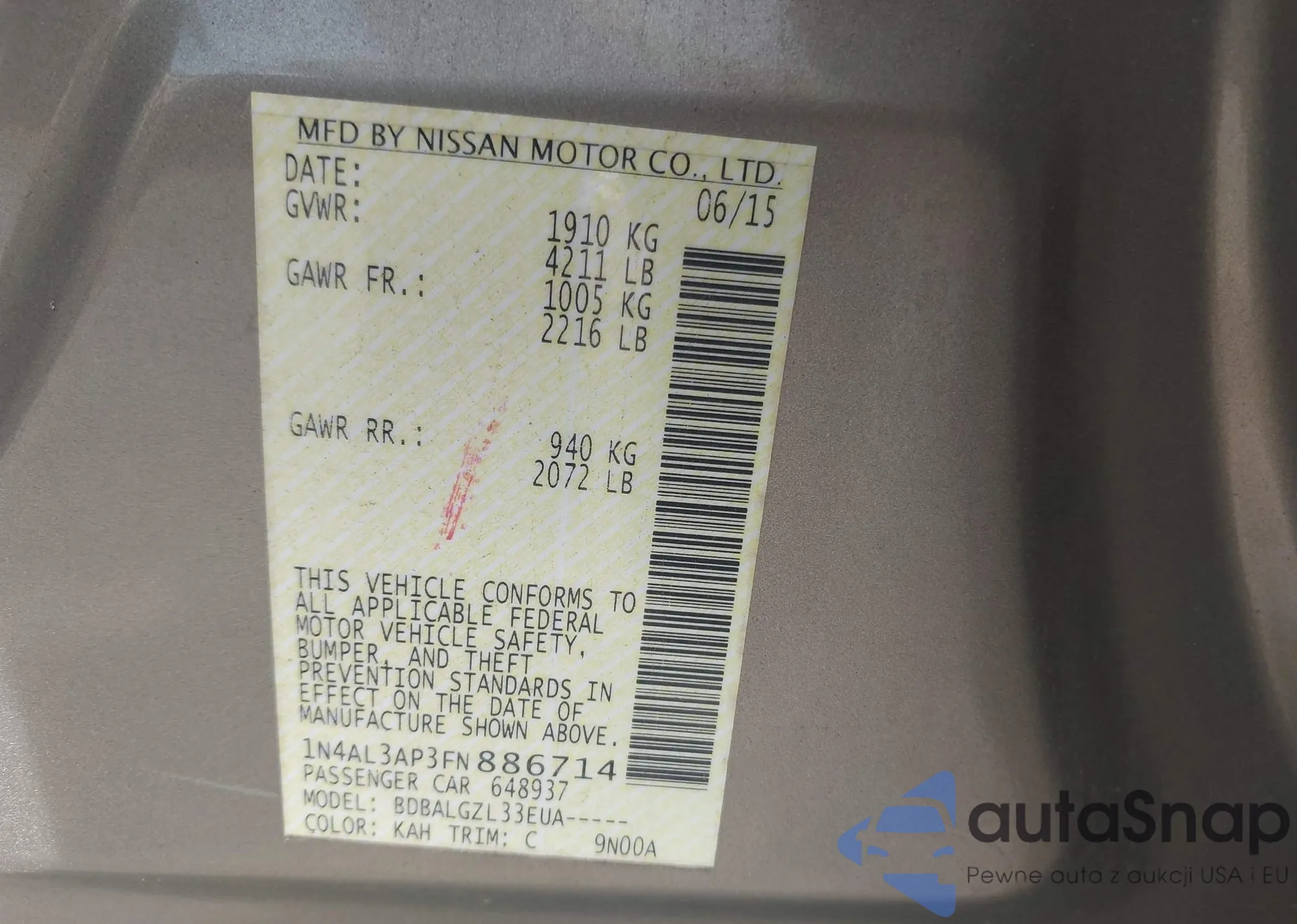 LOT: 44046408 VIN: 1NXBR30E16Z639657