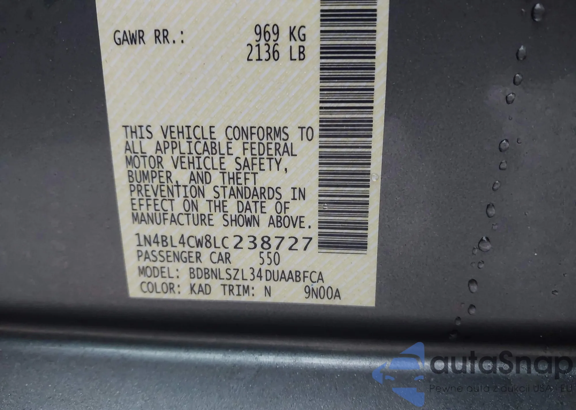 LOT: 43991907 VIN: 5UXZV4C58D0B02225