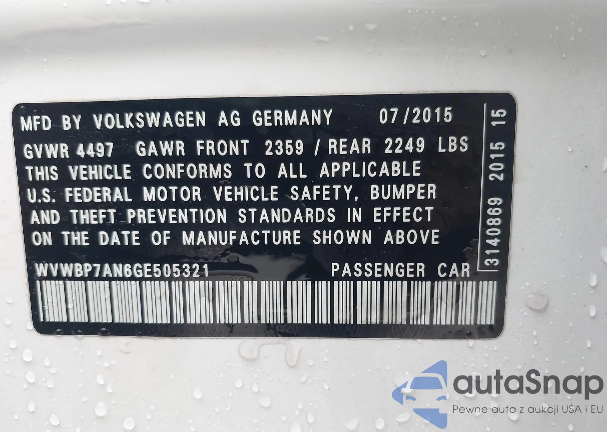 • VIN WVWBP7AN6GE505321