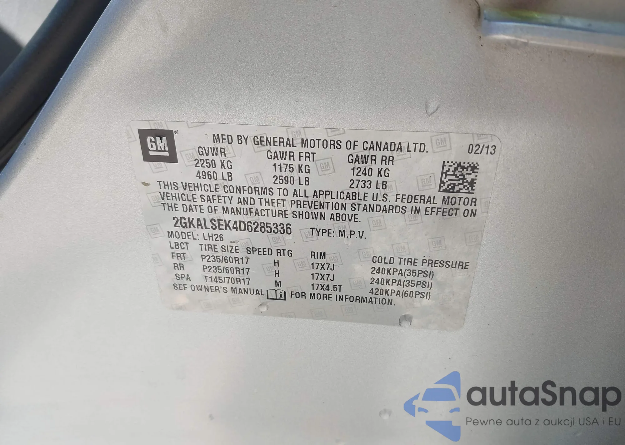 LOT: 44119266 VIN: 1GNALBEK1FZ133492