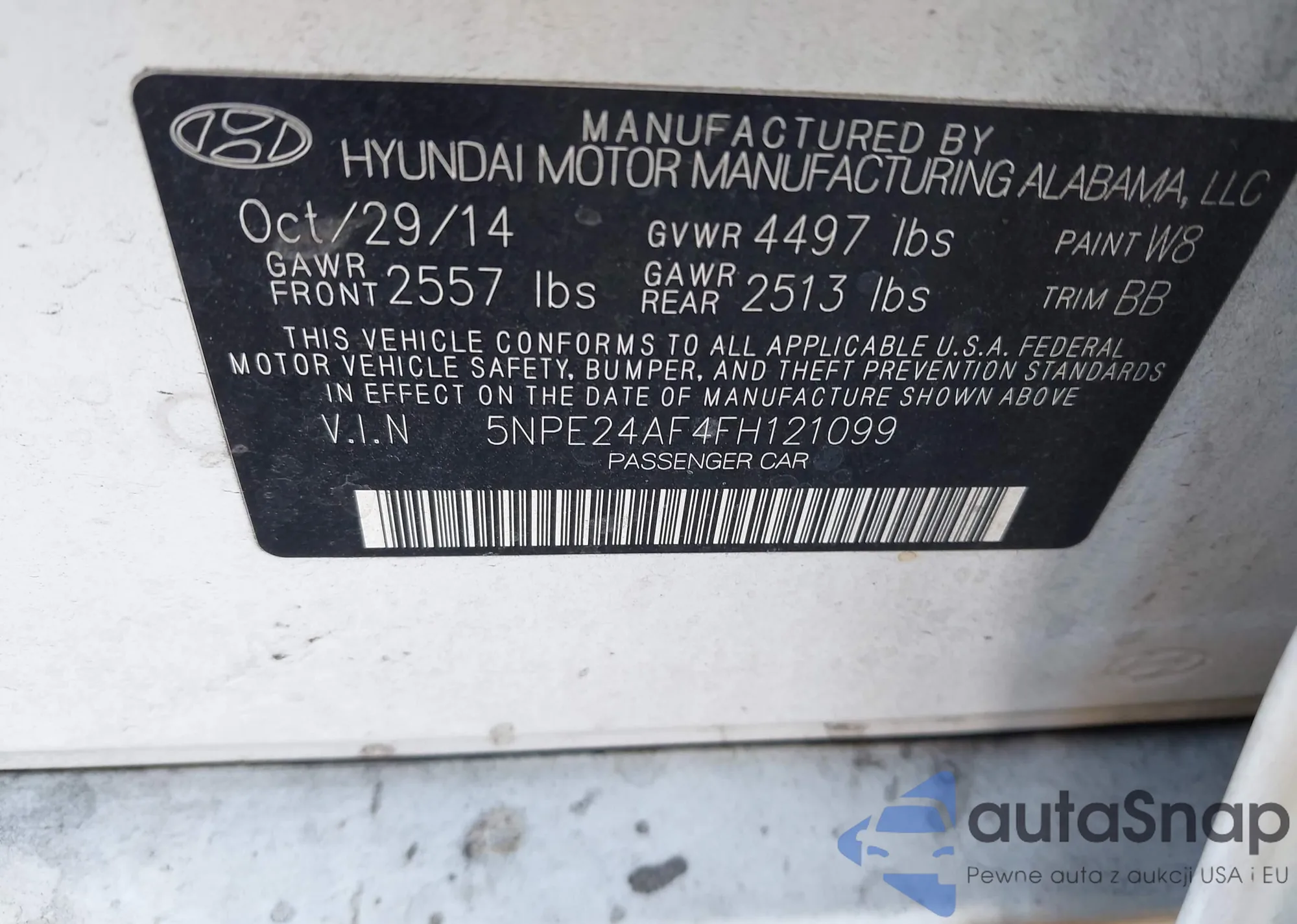 LOT: 44086434 VIN: 5NPE24AF4FH121099