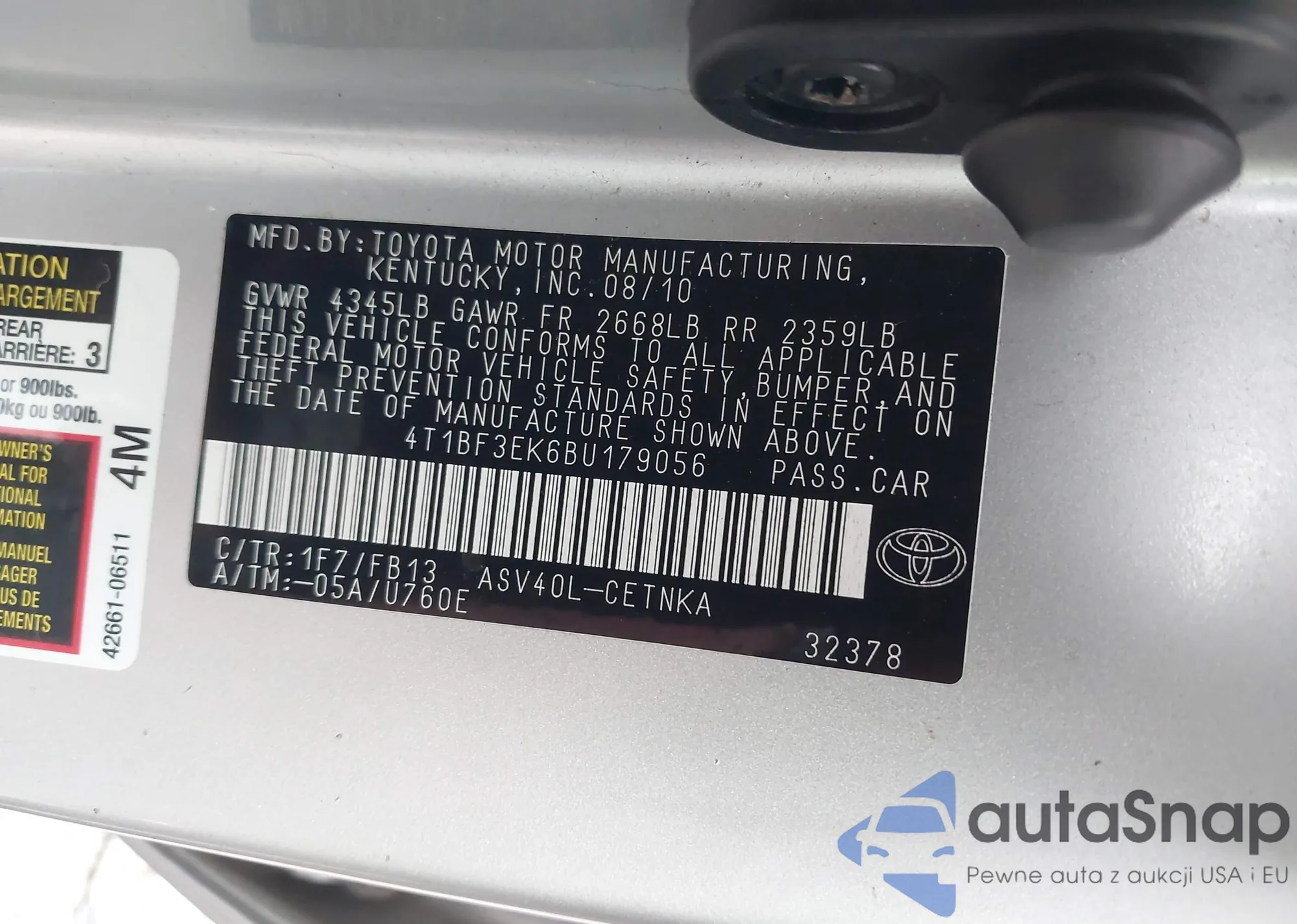 • VIN 4T1BF3EK6BU179056