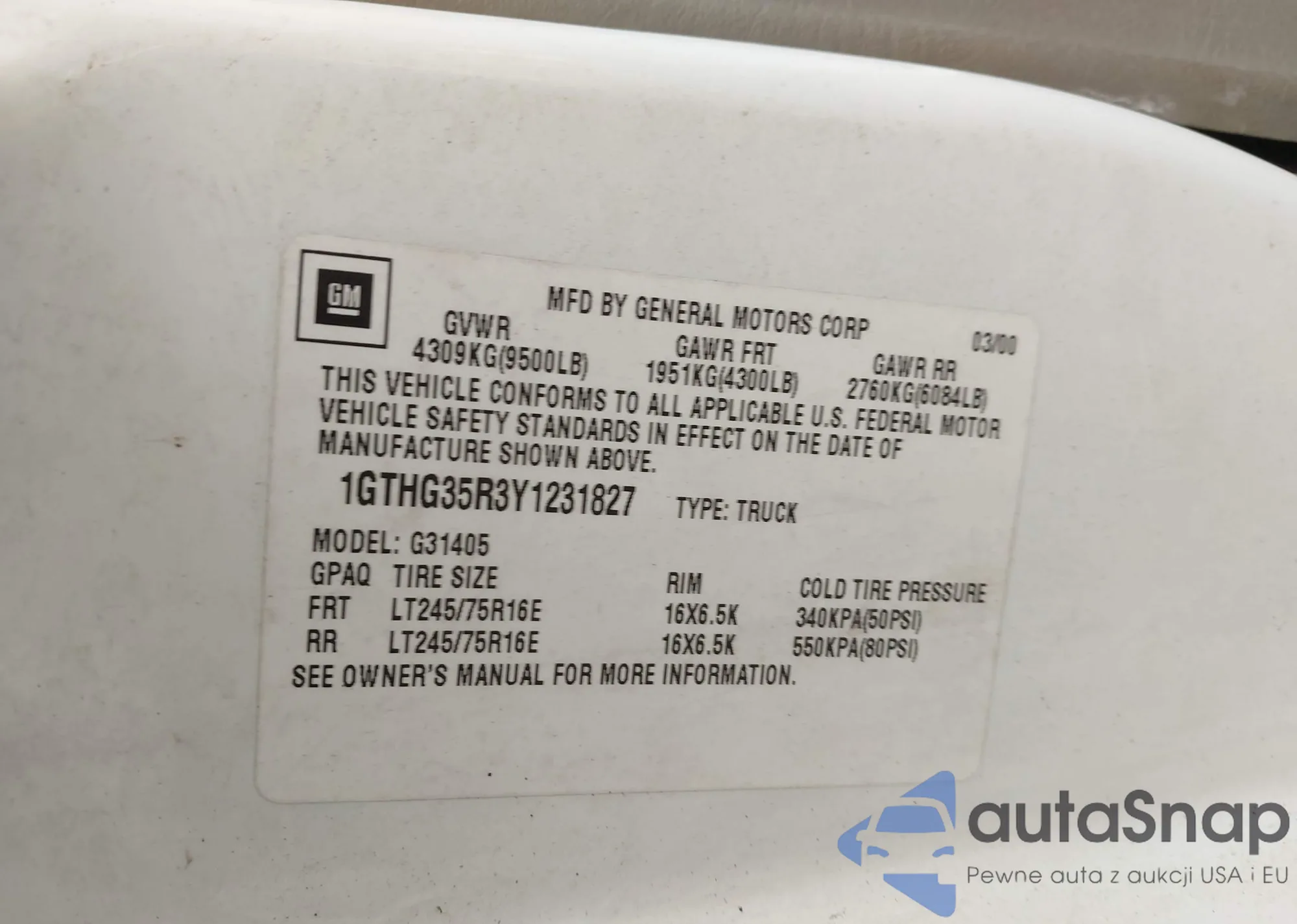 LOT: 43983343 VIN: 4S3BNAD64F3018314