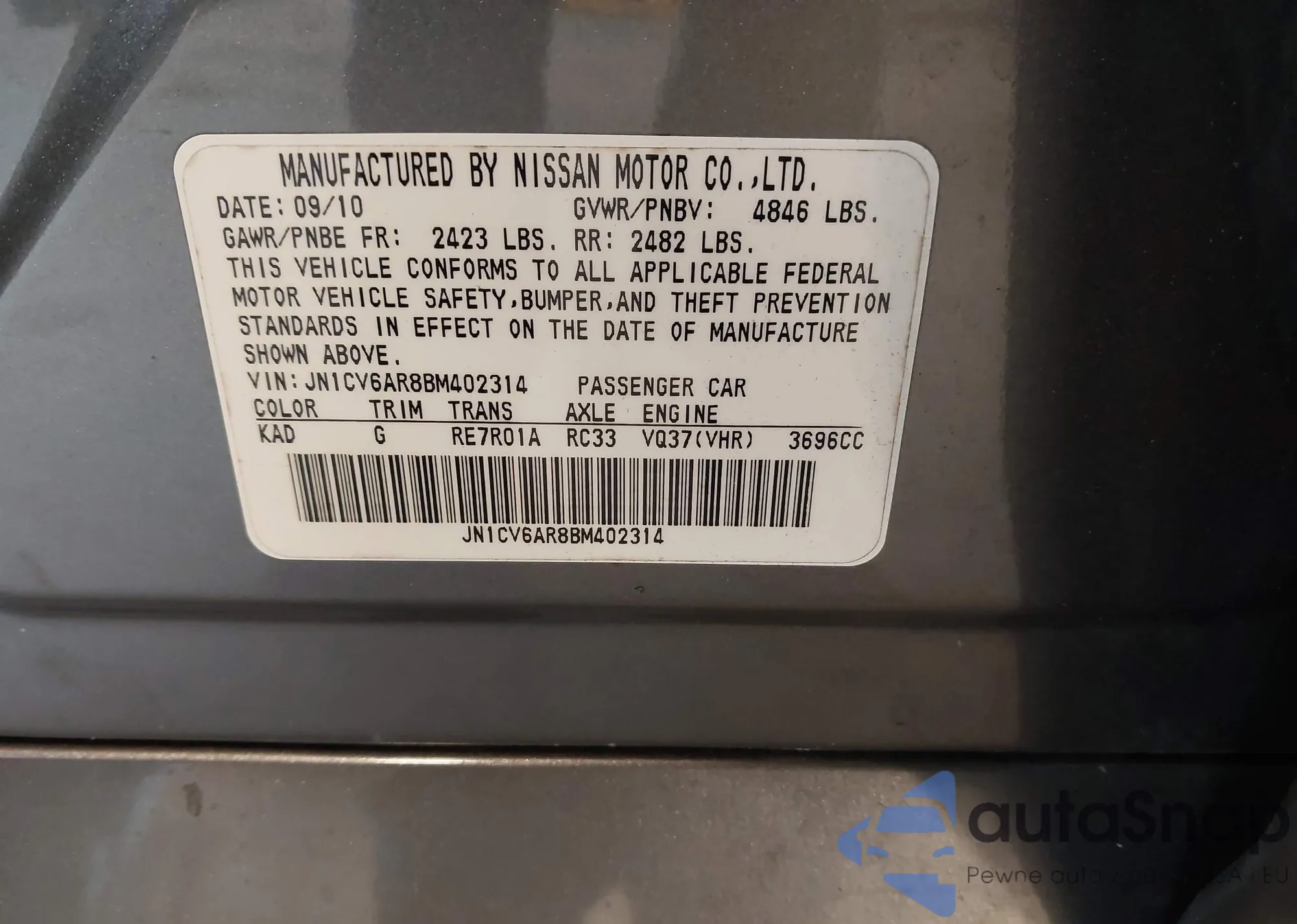 • VIN JN1CV6AR8BM402314