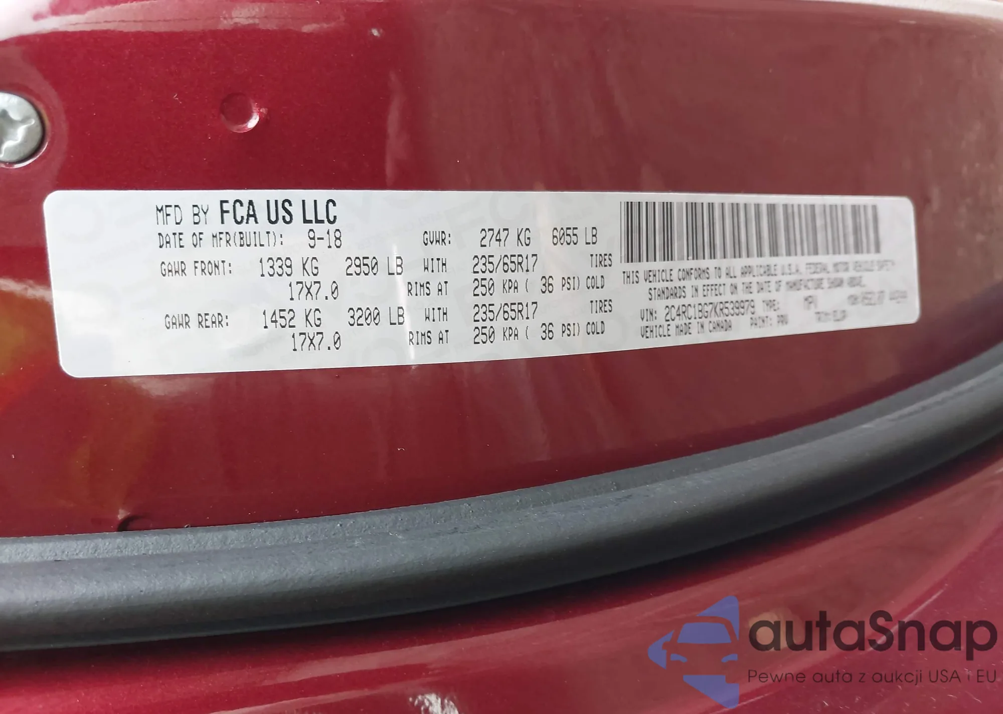 • VIN 2C4RC1BG7KR539979