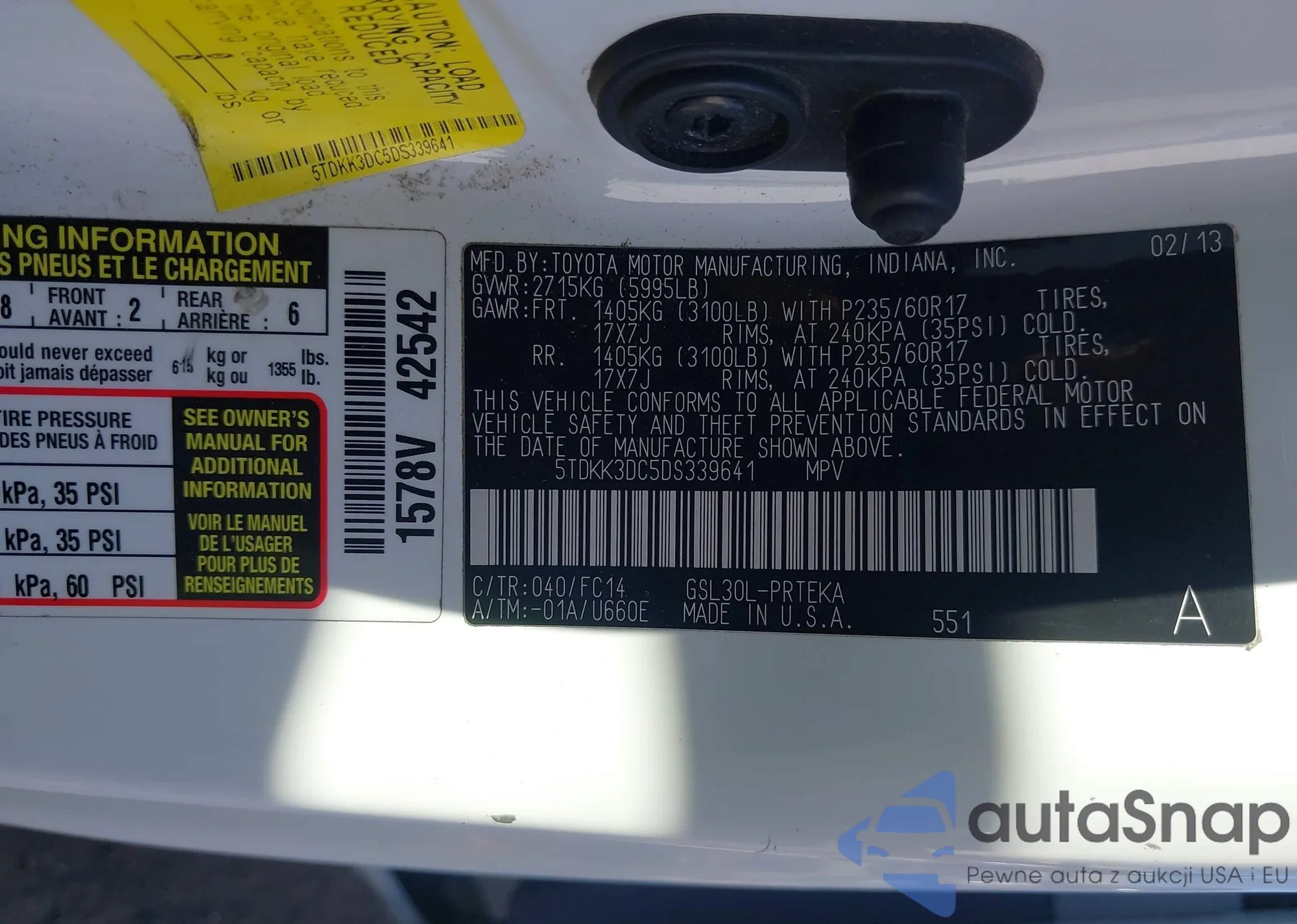 LOT: 44159704 VIN: 5TDKK3DC5DS339641