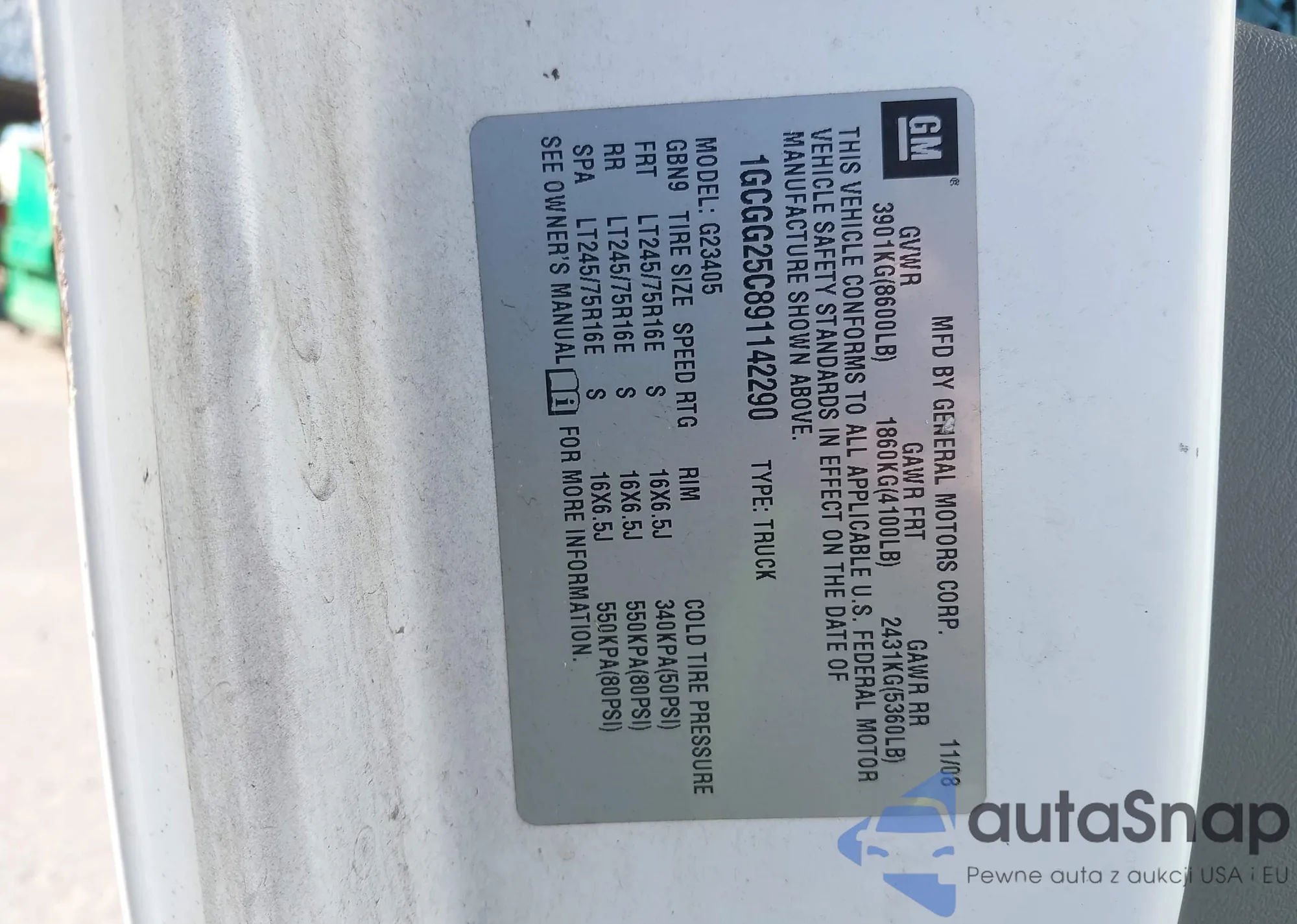 LOT: 43507591 VIN: 1GCGG25C891142290