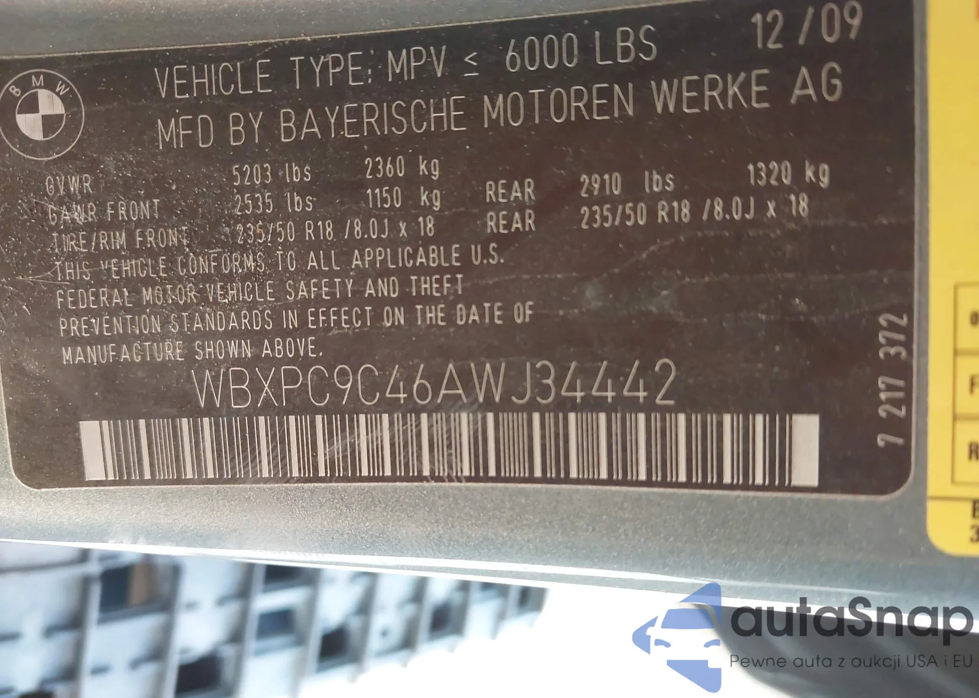 LOT: 43921932 VIN: WBXPC9C46AWJ34442