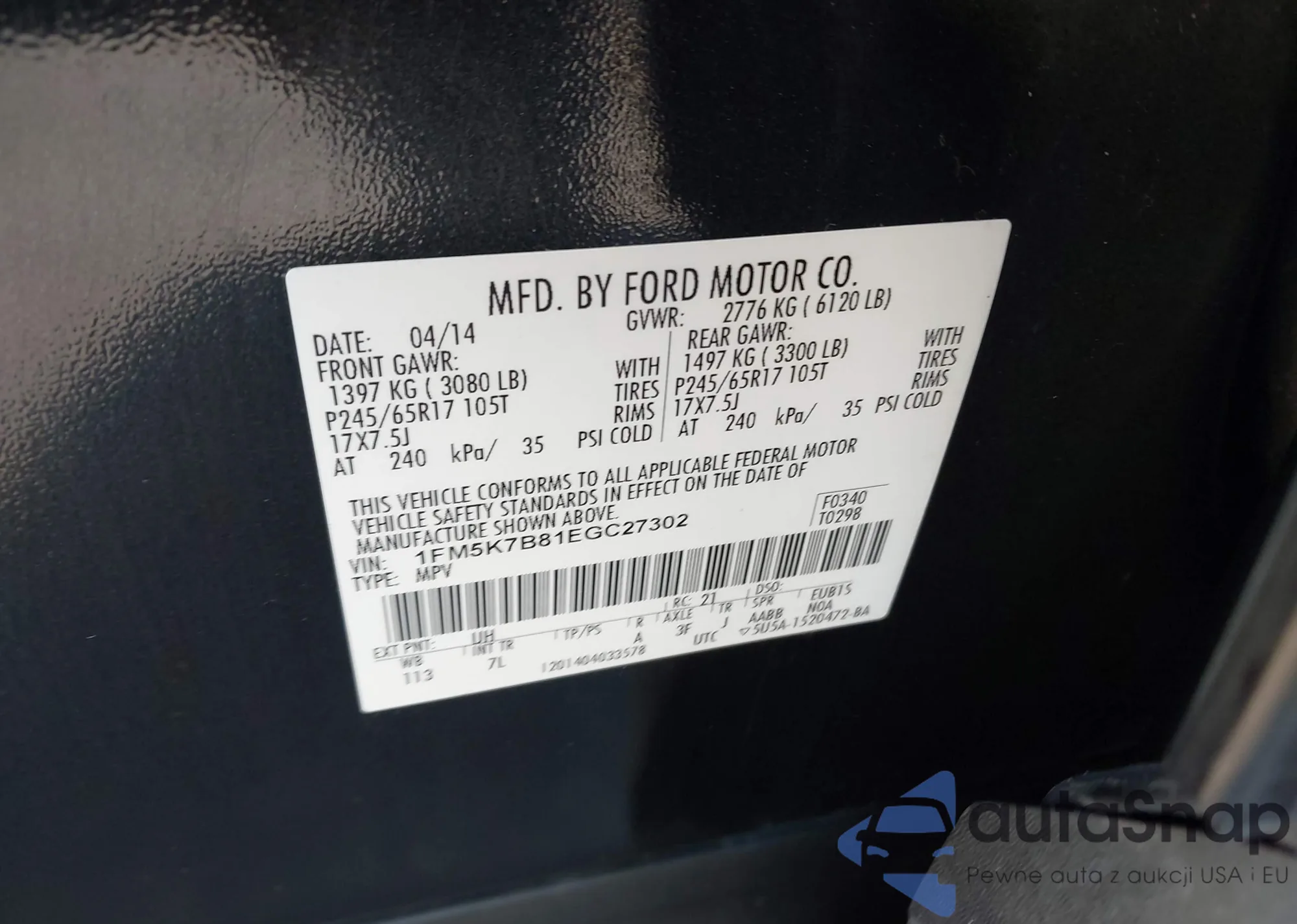 • VIN 1FM5K7B81EGC27302