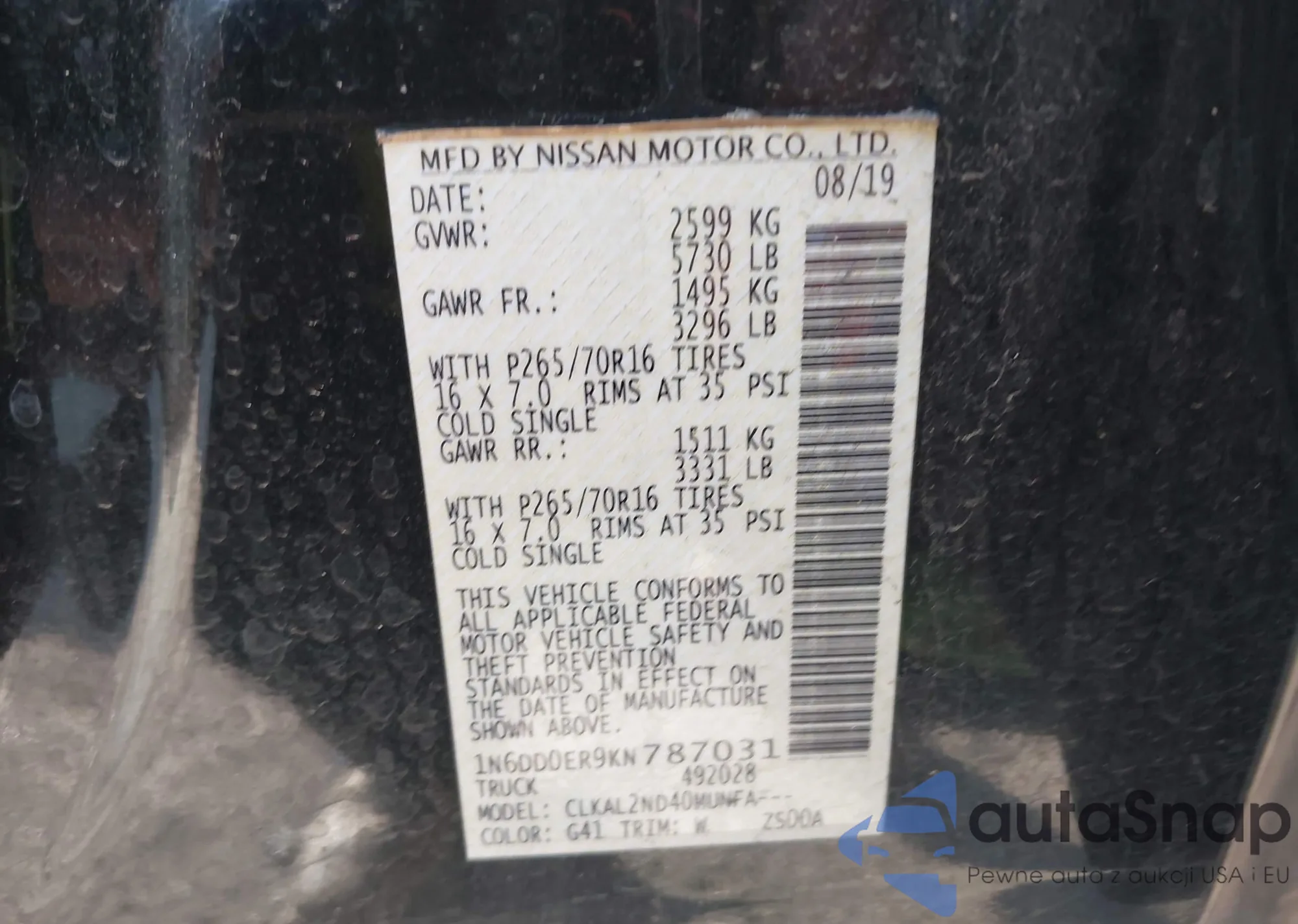 • VIN 1N6DD0ER9KN787031
