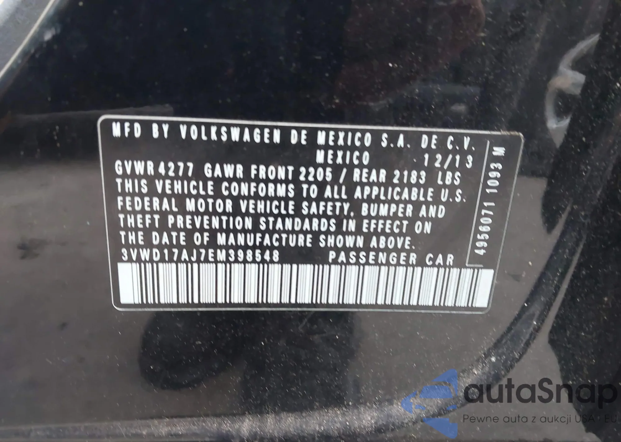 • VIN 3VWD17AJ7EM398548