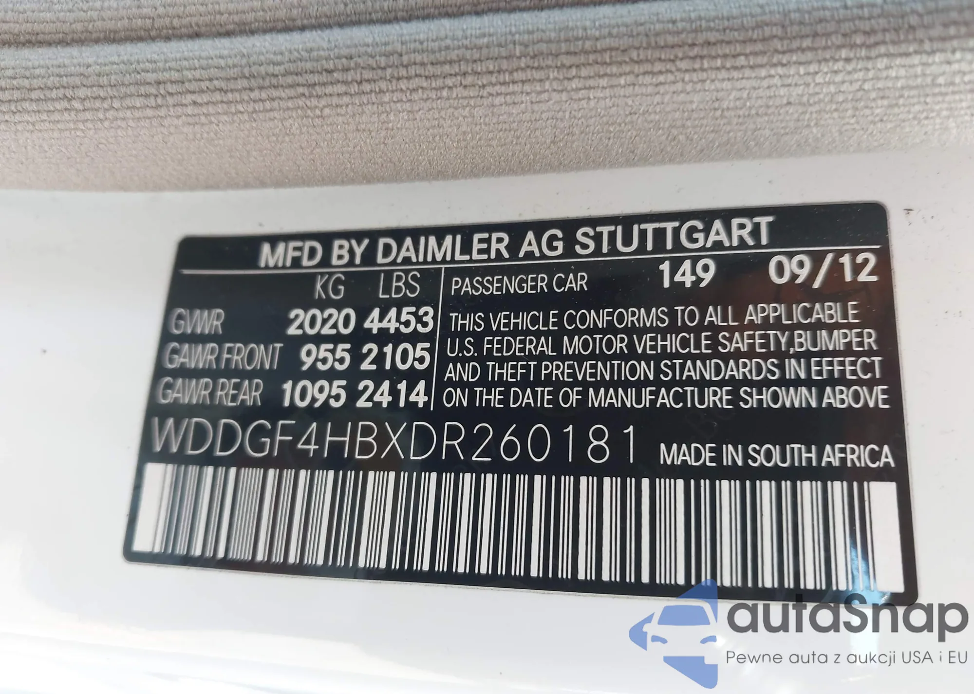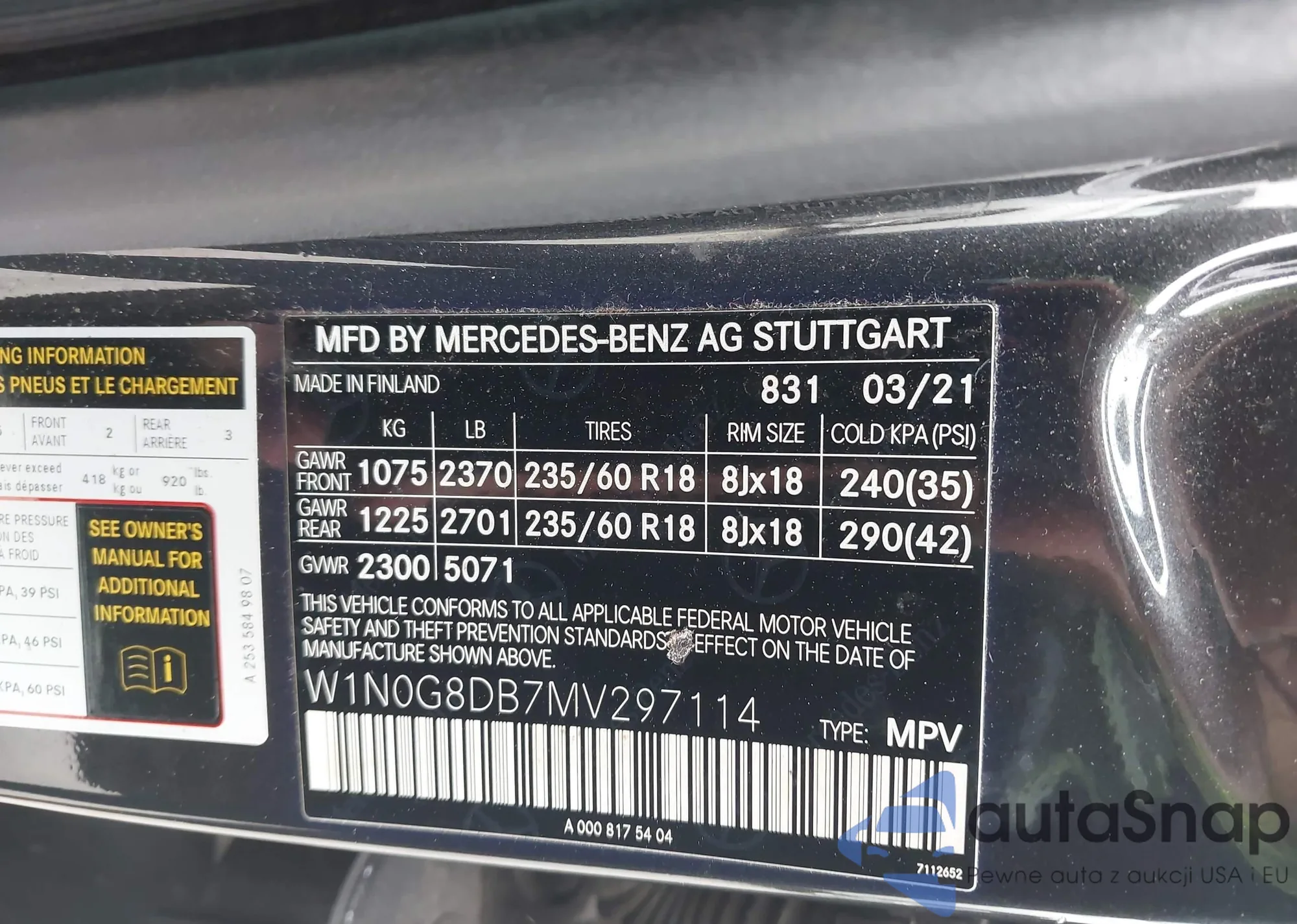 LOT: 44152257 VIN: W1N0G8DB7MV297114